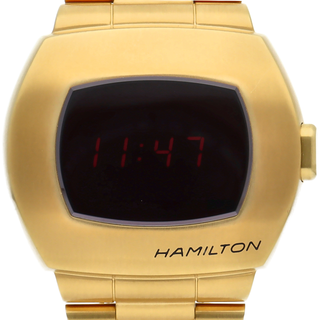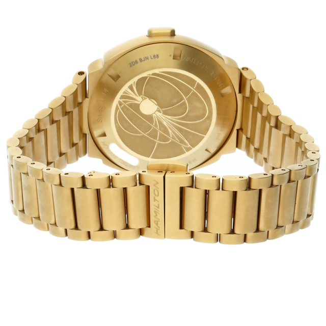 デザインは1973 年発売の「P2」をベースにし、アイコニックな幅広のクッション型ケースを再現。液晶ディスプレイと有機EL(OLED)テクノロジーを組み合わせたハイブリッドディスプレイも特徴。こちらのイエローゴールドPVDモデルは1970本限定で限定BOX付き仕様です。H52424130(H524240)