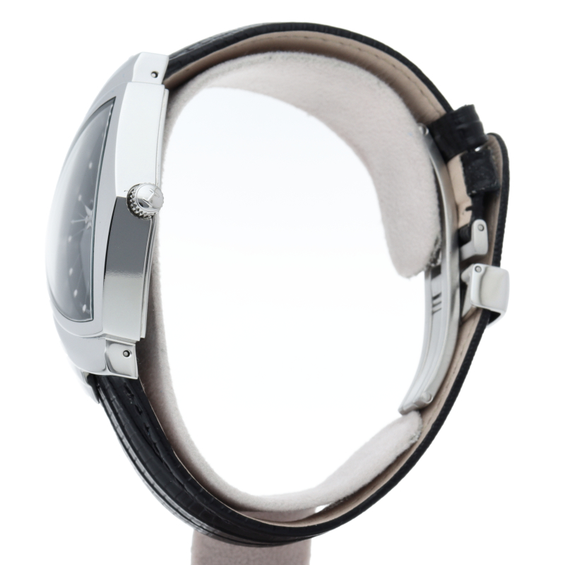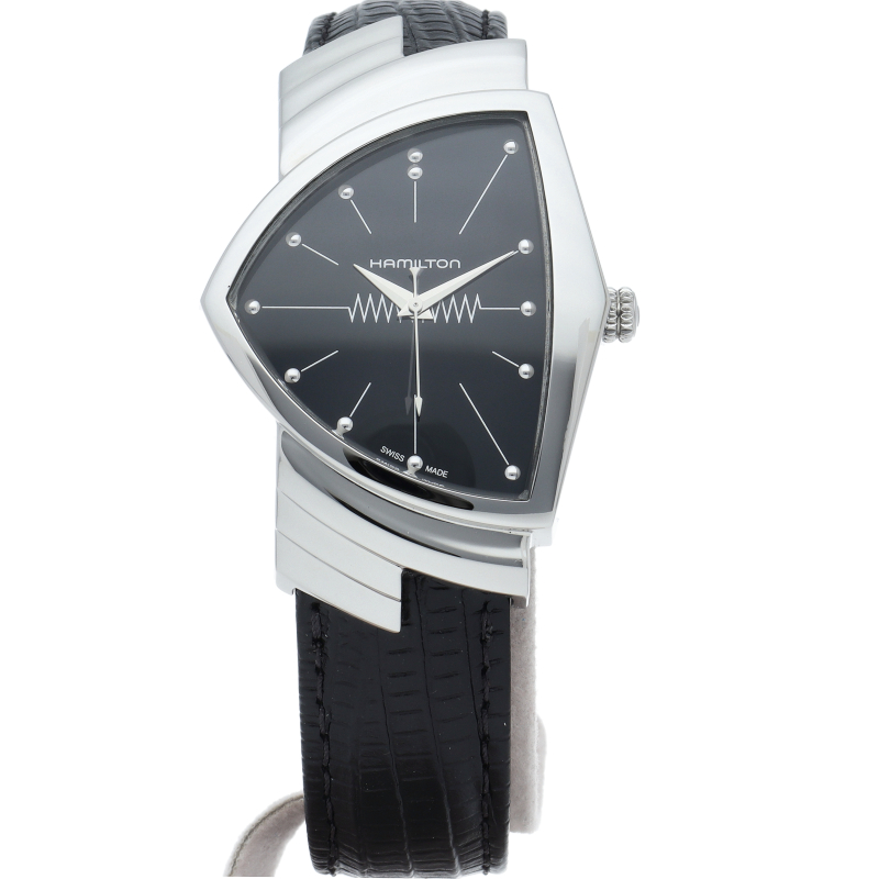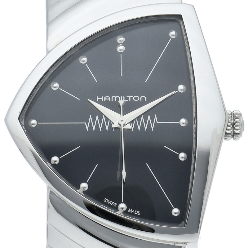 1957年に発売されたベンチュラは、世界初の電池式腕時計として時計史に革命を起こしました。革新的で大胆なデザインを備えたベンチュラはアイコンウォッチとして不動の人気を誇り、コレクターズアイテムとなりました。ベンチュラの最新モデルは、オリジナルに忠実な盾形のフォルムをそのままに、20世紀半ばのモダンデザインを色濃く反映しています。H244112(H24411732)