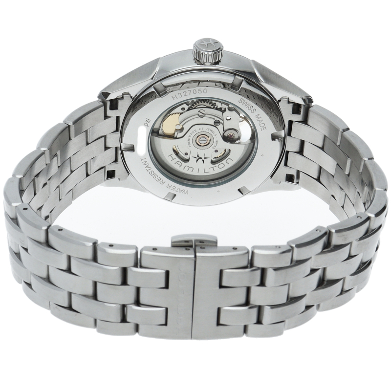 スイスの精緻な技術を堪能できる「ジャズマスター オープンハート」。質の高い素材を使用し、上品ながら存在感のある1本です。H327050/H32705151