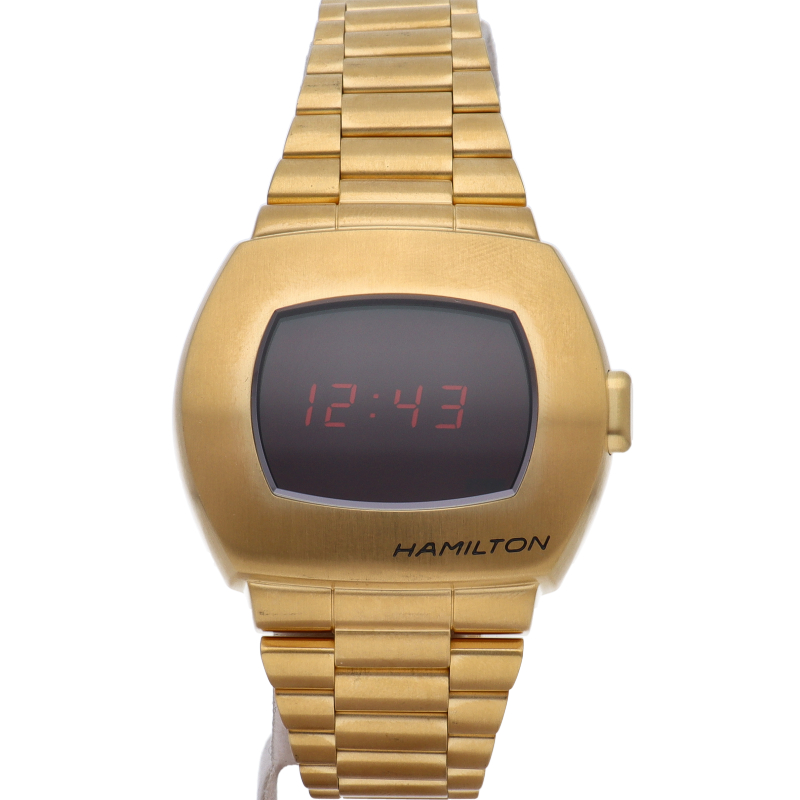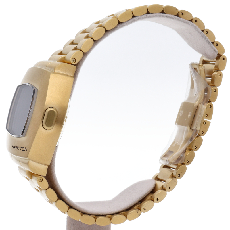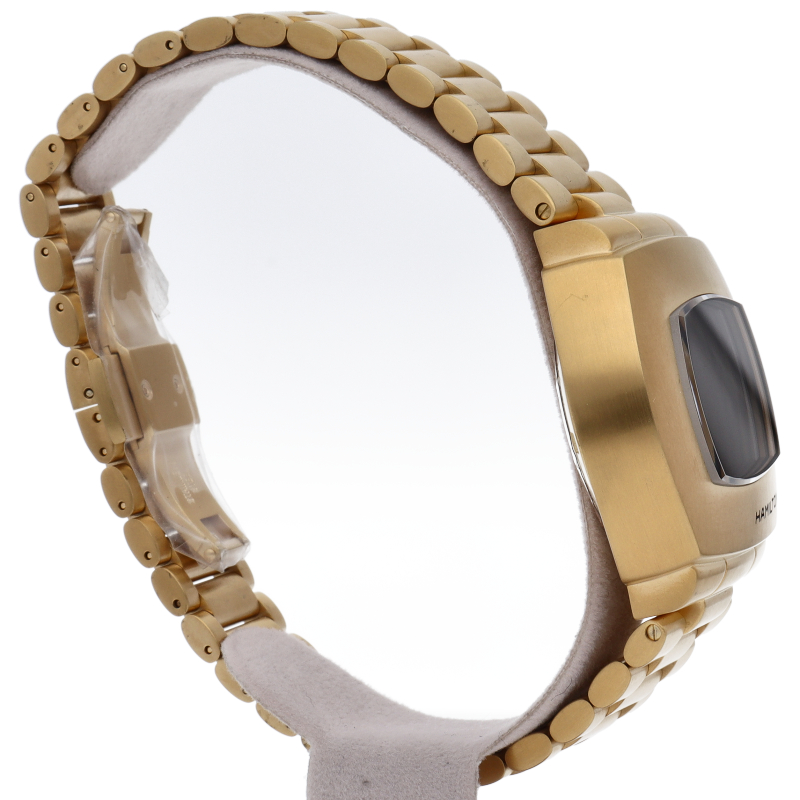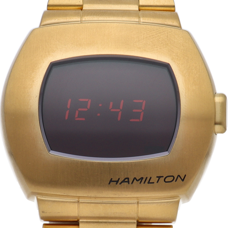 デザインは1973 年発売の「P2」をベースにし、アイコニックな幅広のクッション型ケースを再現。液晶ディスプレイと有機EL(OLED)テクノロジーを組み合わせたハイブリッドディスプレイも特徴。こちらのイエローゴールドPVDモデルは1970本限定で限定BOX付き仕様です。H52424130(H524240)