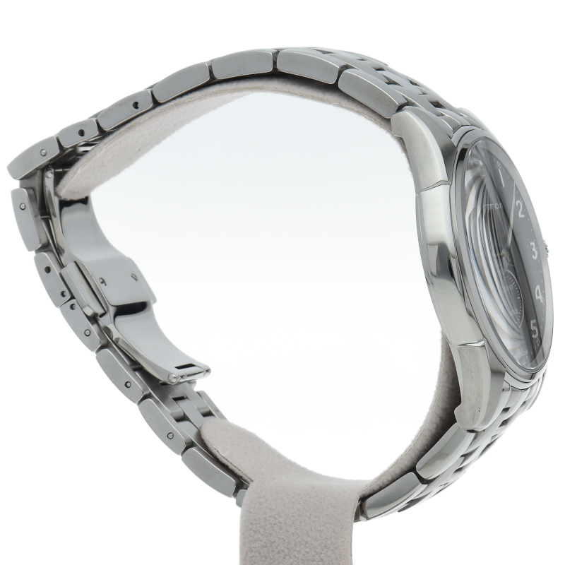 ジャズマスター シンラインは、薄いケースが特徴的なタイムピース。すっきりとシンプルでクラシカルな佇まいが印象的です。スモールセコンドがスマートなラインに完璧にフィットし、スタイリッシュなデザインに仕上がっています。