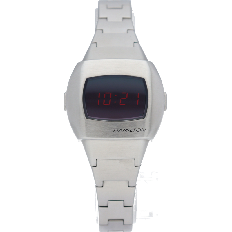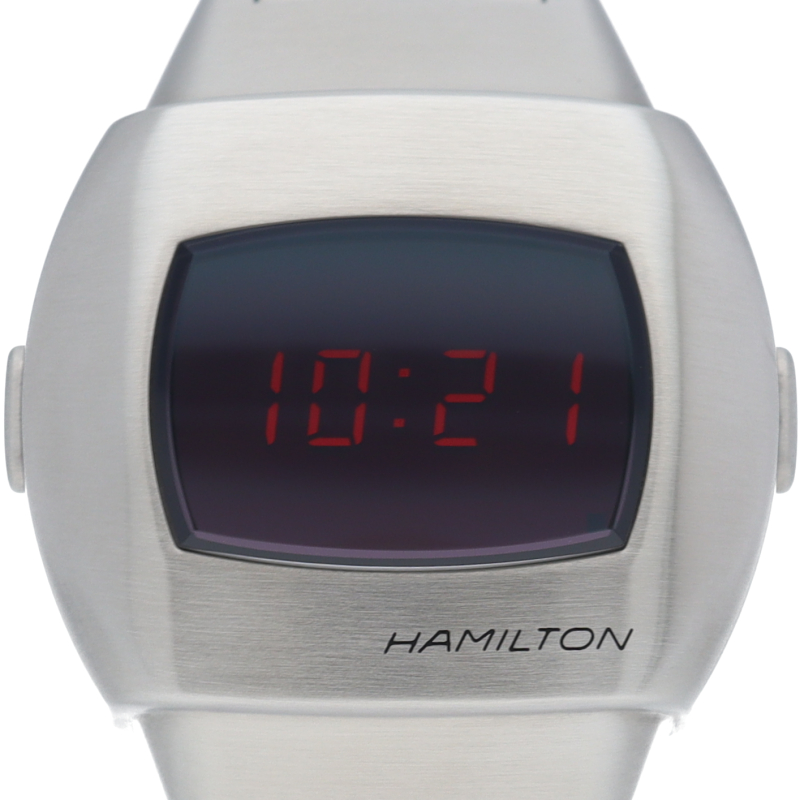 クールさはそのままに、現代に合わせてアレンジした「PSR」。世界を一変させた初のデジタルウォッチと変わらず、紛れもないスタイルで戻ってきました。1974年に初めて登場したクッション型「ハミルトン パルサー」モデルのビンテージシェイプからインスピレーションを得て、宇宙まで行くことができる現代を象徴するモデルであり続けています。H523040/H52304130。