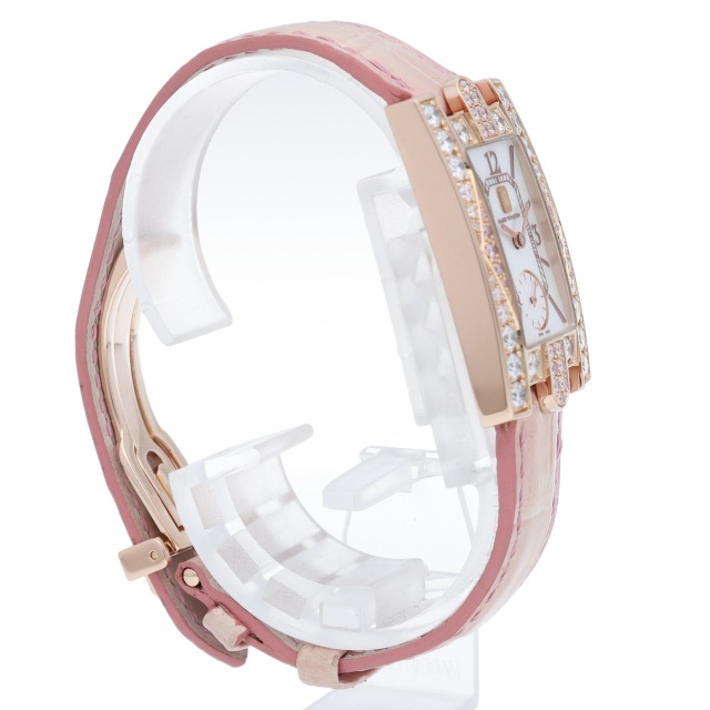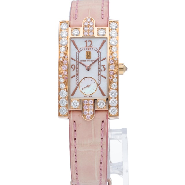 宝飾業界で世界的に有名な「ハリー ウィンストン」。芸術的なデザインと高級感溢れる人気のモデルで、ベゼルとダイヤルに施されたダイヤとピンクゴールドの組み合わせが上品な1本。