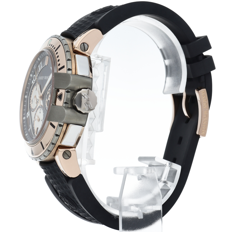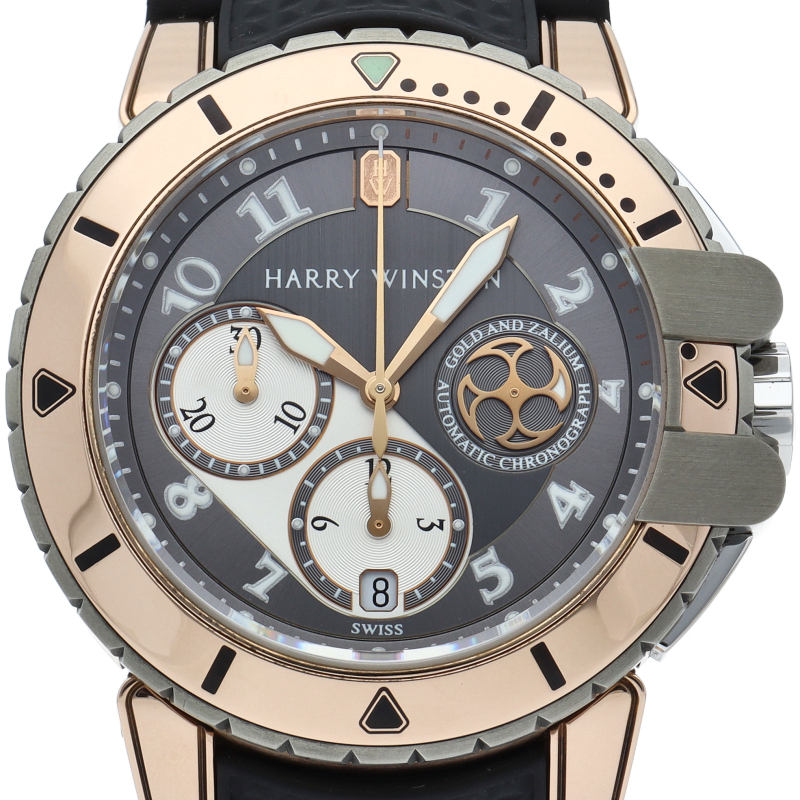 宇宙工学用に開発された特殊合金「ザリウム」をハリー・ウィンストンが自社製品に使用した特別モデルです。存在感のあるスポーティなデザインですが、細かな部分まで繊細に作られておりハリーウィンストンならではの上品さも兼ね備えております。