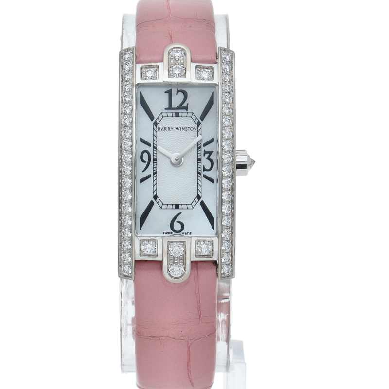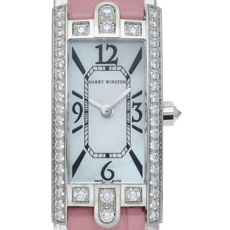 「キング・オブ・ダイヤモンド」ハリー・ウィンストンを代表するタイムピース「アヴェニュー」。ハリー・ウィンストンが本店を構える、ニューヨークの雰囲気を表現したコレクションです。アールデコ調のホワイトゴールドのレクタンギュラーケースのベゼル部分やリューズ等に総計約0.68カラットものダイヤモンドが散りばめられており、豪華さと華奢なつくりが女性の華やかさを造り上げます。
