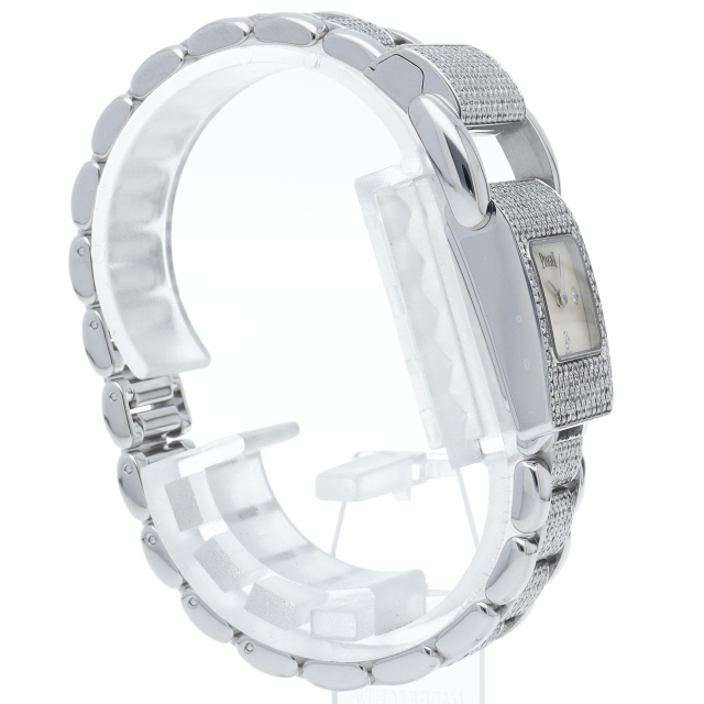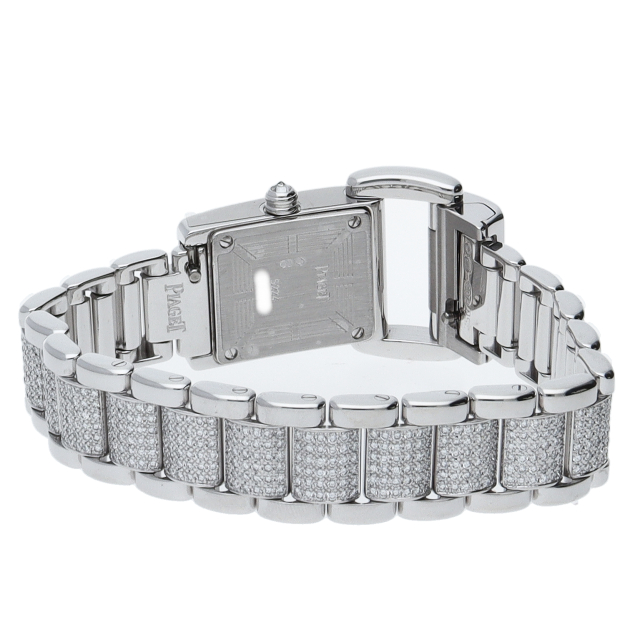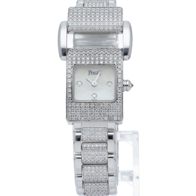 ピアジェのケースからブレスレットにかけて一体のデザインで、重厚な作りは使う人を満足させます。ケース・ブレスにホワイトゴールドを贅沢に使用し、ベゼル・ブレスにはダイヤをあしらった豪華な一本です。
