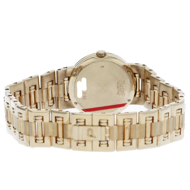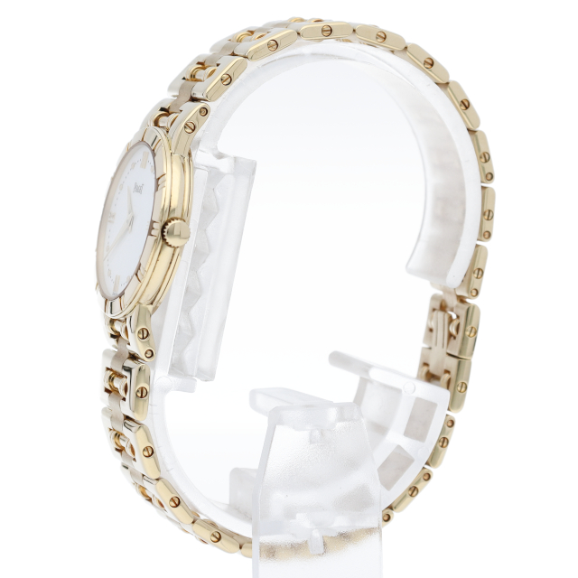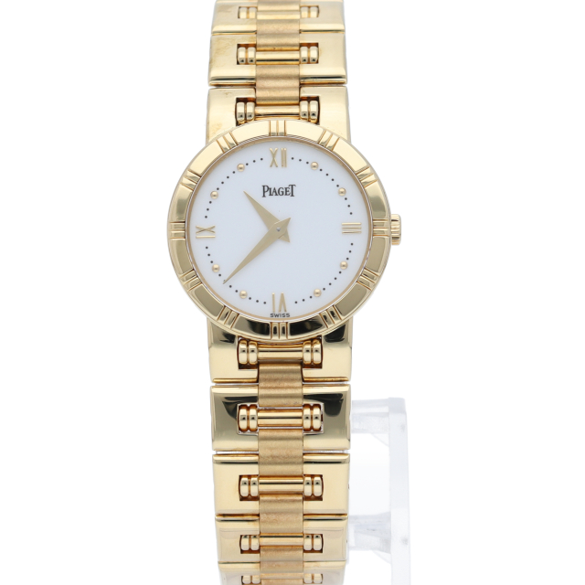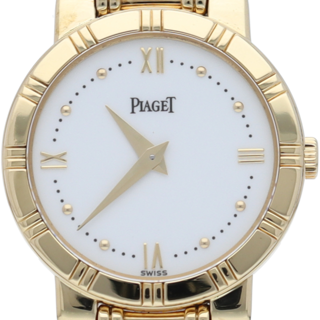 ピアジェのレディースウォッチ「ダンサー」です。ケース・ブレスにイエローゴールドを贅沢に使用し、ホワイトダイヤルが鮮やかな豪華な一本です。