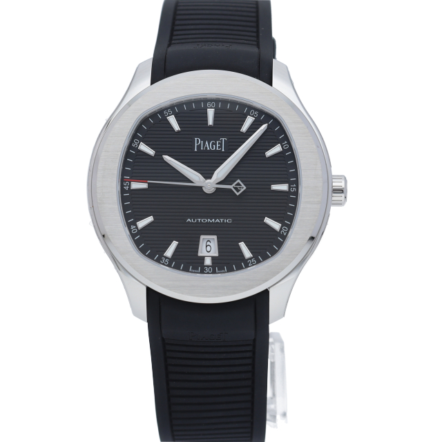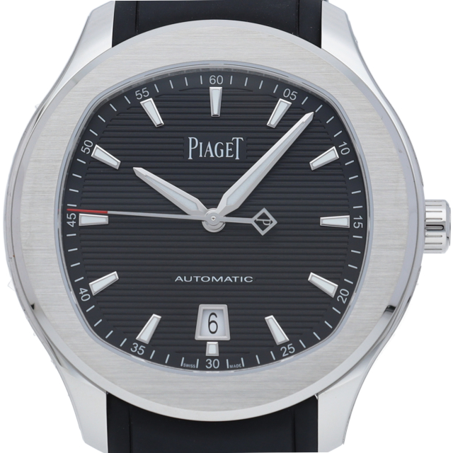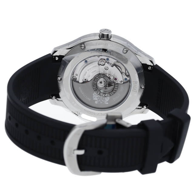 直径42mmのステンレススチール製ケースには、洗練されたポリッシュ仕上げとサテン仕上げが交互に配されています。サファイアケースバックからは、ピアジェの紋章が刻印されたチャコールグレーのローターの繊細な仕上げを見ることができます。細部まで美しい秒針には、スイスのマニュファクチュールの象徴として、透かし模様のPがあしらわれ、どんなシーンにもふさわしく、カジュアルでエレガンスな一本です。G0A47014(P11268)