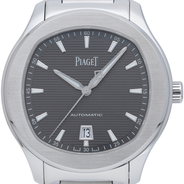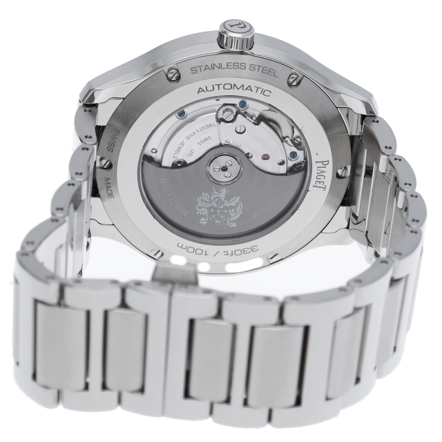 42mmのステンレススチール製ケースには、洗練されたポリッシュとサテン仕上げが交互に配されております。サファイアケースバックからは、ピアジェの紋章が刻印されたチャコールグレーのローターの繊細な仕上げを見ることができます。細部まで美しい秒針には、スイスのマニュファクチュールの象徴として、透かし模様のPがあしらわれ、どんなシーンにもふさわしく、カジュアルでエレガンスな一本です。G0A41003(P11268)