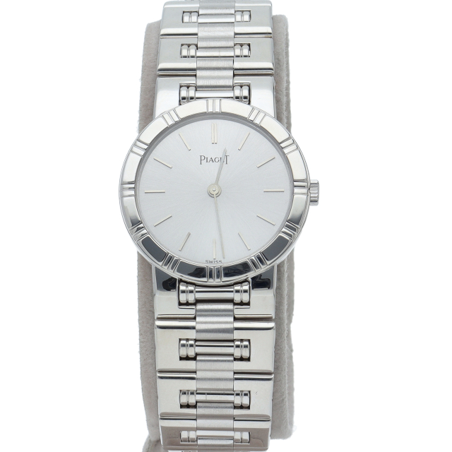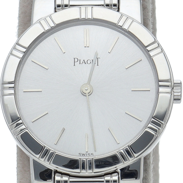 ピアジェのレディースウォッチ「ダンサー」です。ケース・ブレスにホワイトゴールドを贅沢に使用し、シルバーカラーの文字盤が上品な逸品です。