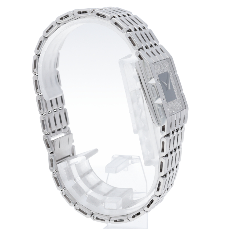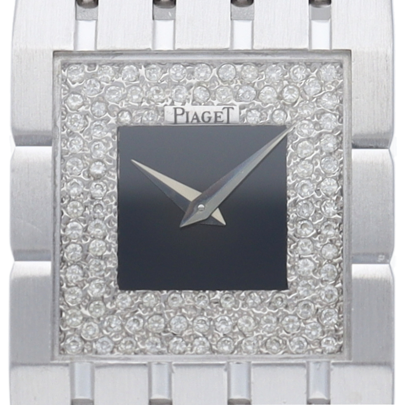 ピアジェのケースからブレスレットにかけて一体のデザインで、重厚な作りは使う人を満足させます。ダイヤルにはダイヤモンドをあしらった豪華な一本です。