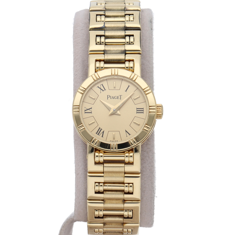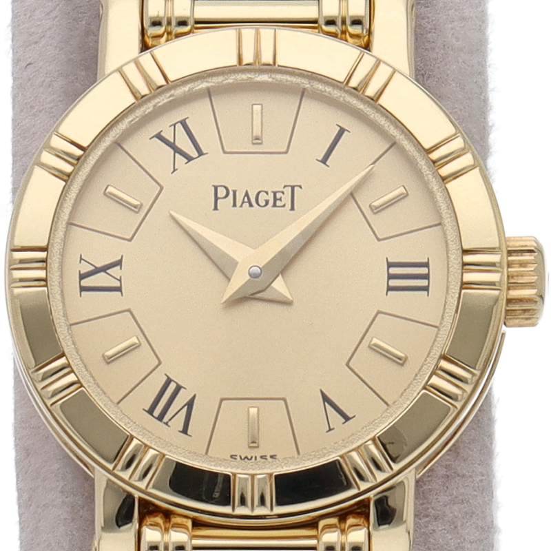 ピアジェの人気モデルで「ダンサー」です。シンプルなラウンドケースは控えめなデザインでありながらも、イエローゴールドを使用することで高級ジュエラーらしくエレガントなデザインに仕上がっております。