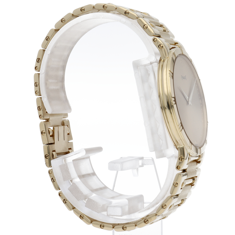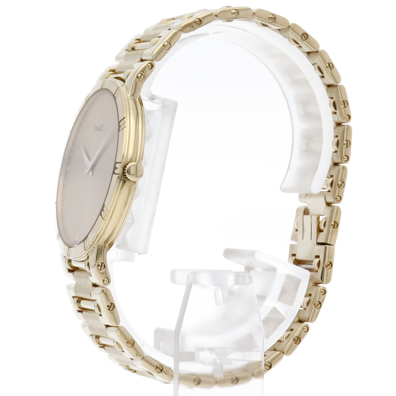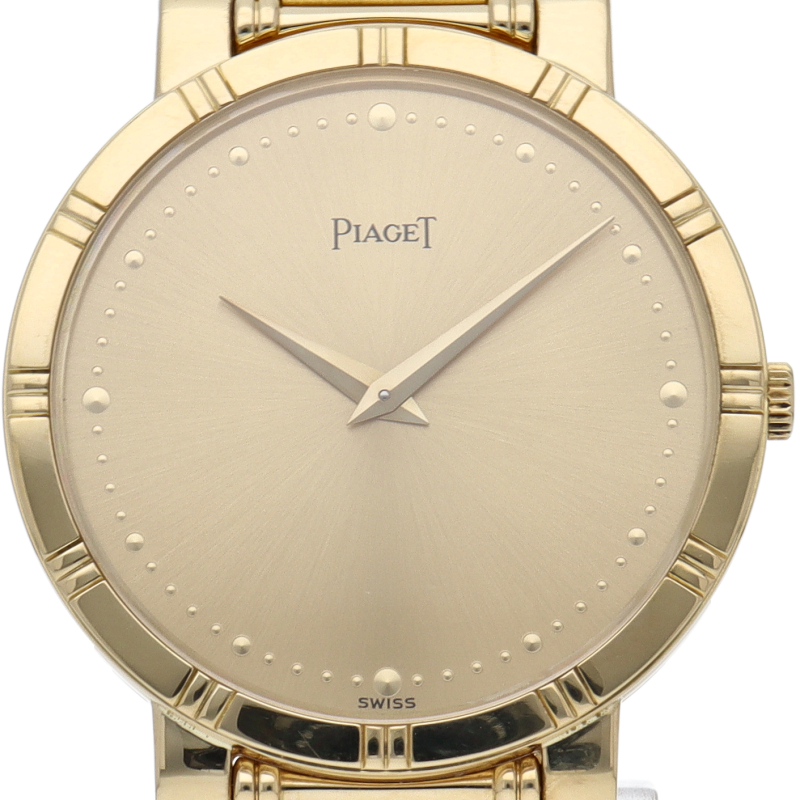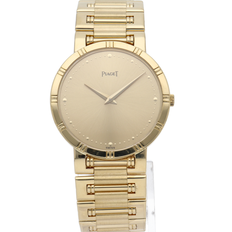 ピアジェのレディースウォッチ「ダンサー」です。ケース・ブレスにイエローゴールドを贅沢に使用し、シャンパンダイヤルが鮮やかな豪華な一本です。