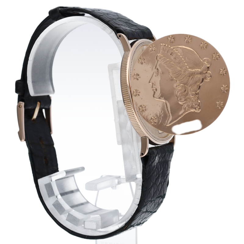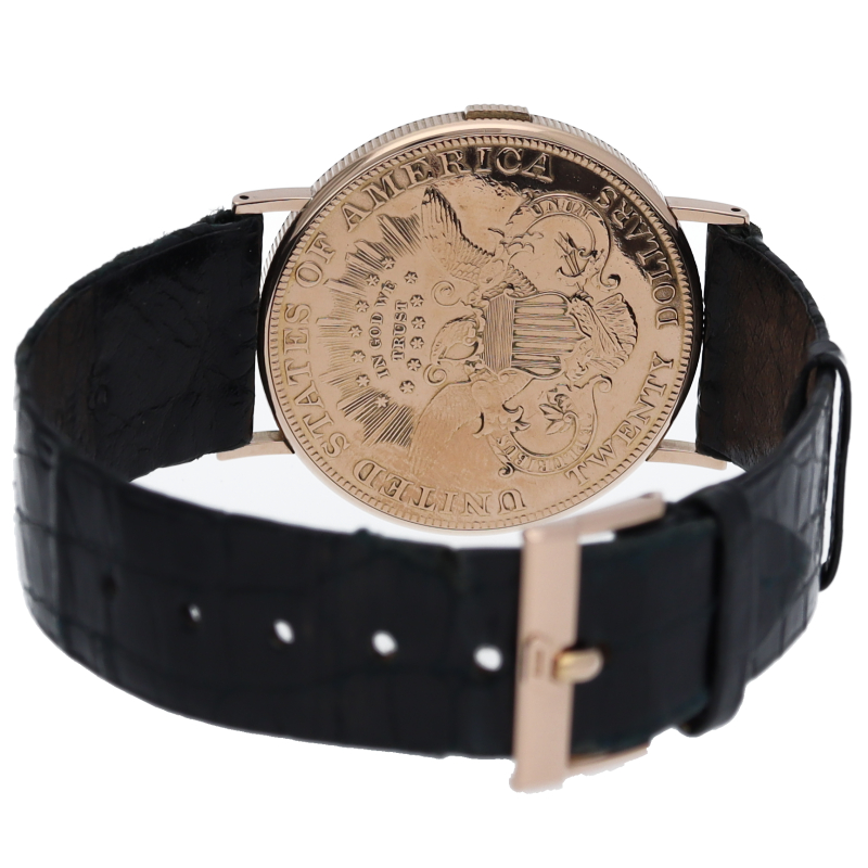 20$金貨をベースに作成された豪華なコインウォッチです。ムーブメントには薄い手巻ムーブメントが搭載されたクラシカルで豪華な1本です。