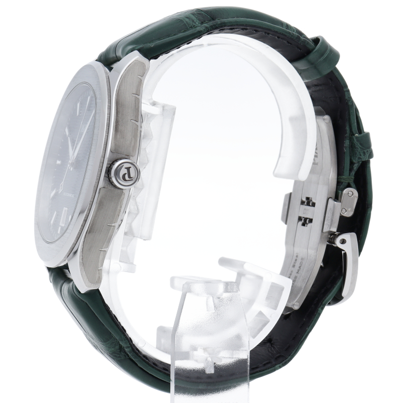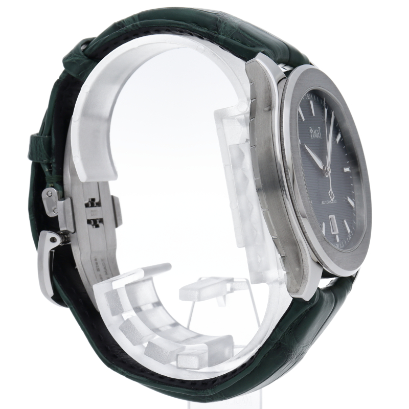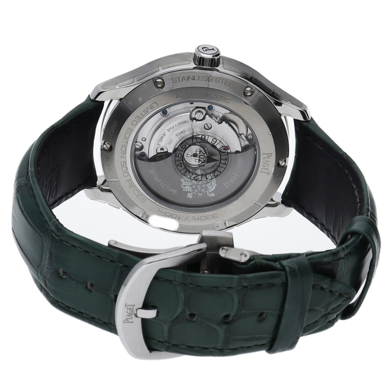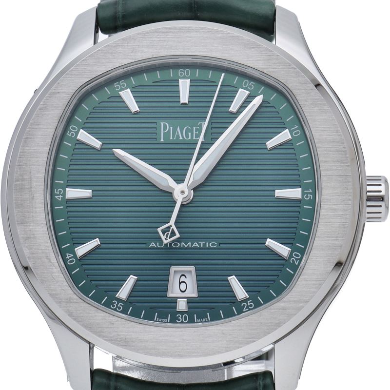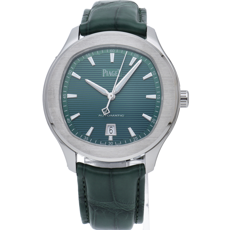 男性向けステンレススチール製自動巻ウォッチ。グリーン文字盤。グリーンアリゲーターストラップ。カジュアルなエレガンスとモダニティを放つこのステンレススチール製ウォッチは、フレッシュなカラーでスポーティーなルックを一層引き立てます。ピアジェならではのラウンド型とクッション型を融合させた直径42mmのケースに、ギョーシェ模様のグリーン文字盤が無数のシェードを煌めかせます。