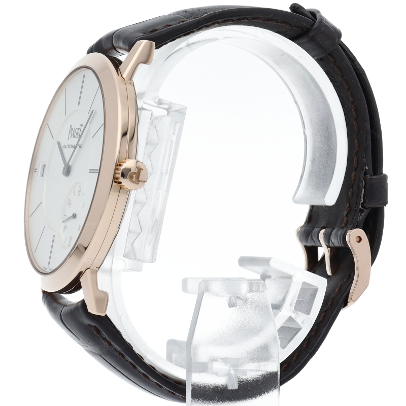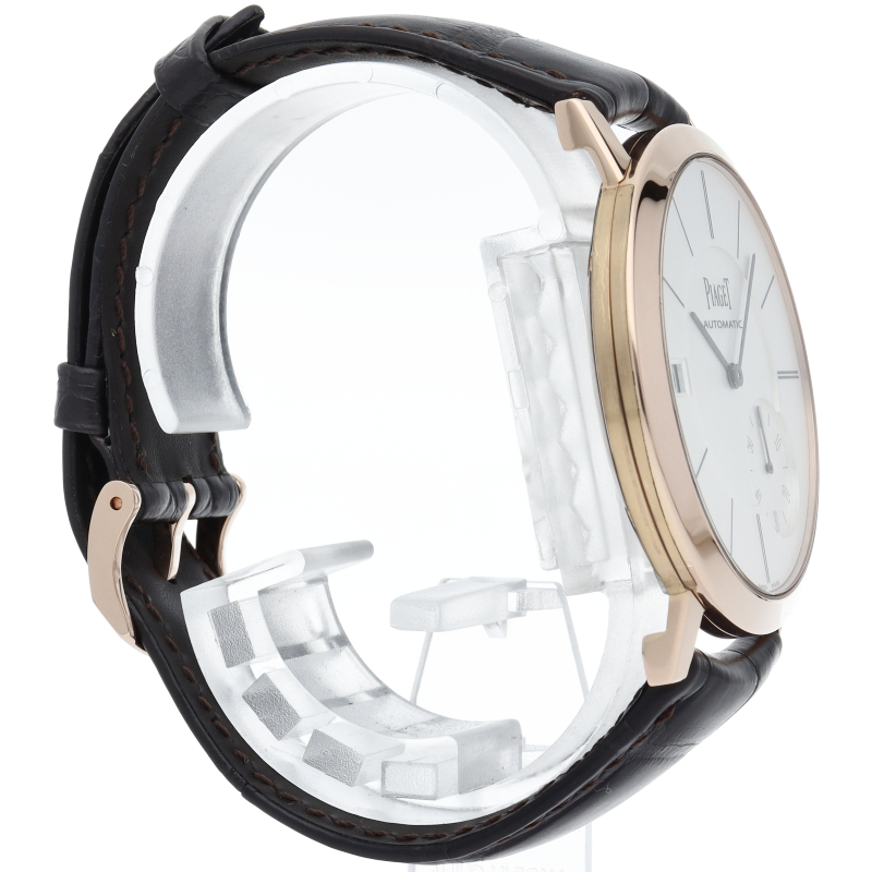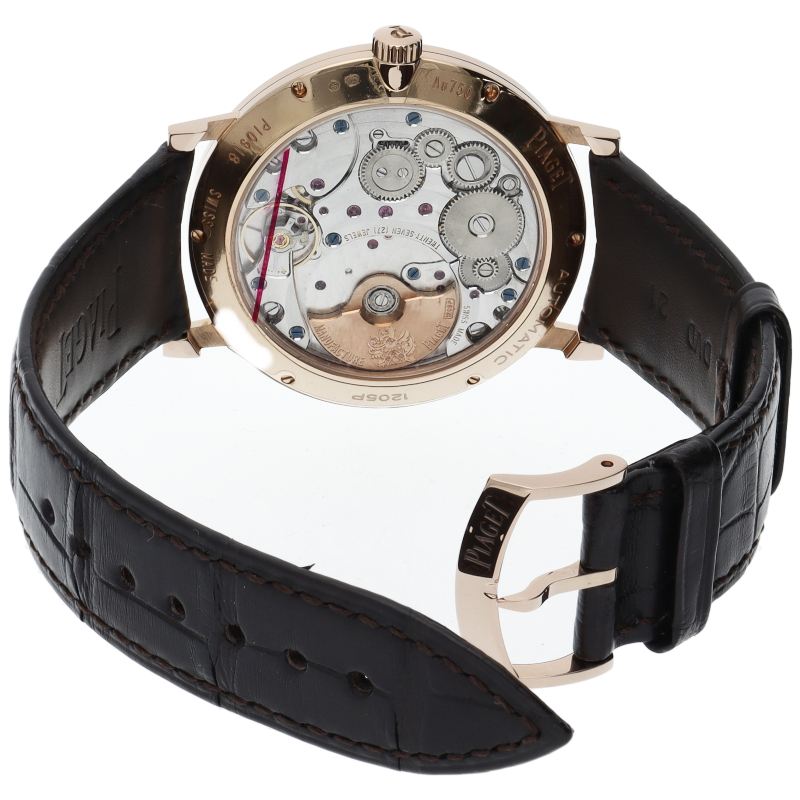 日付表示が加わったこのAltiplanoウォッチの魅力は、その薄さとエレガントで繊細なシルエットにあります。本質を追求するという哲学を体現したこのウォッチは、厚さ3mmのムーブメントと厚さ6.36mmのケースによって、限られたスペースの中で、高度な技術と巧みな機構を問題なく収められるということを証明しています。P10918/G0A38131