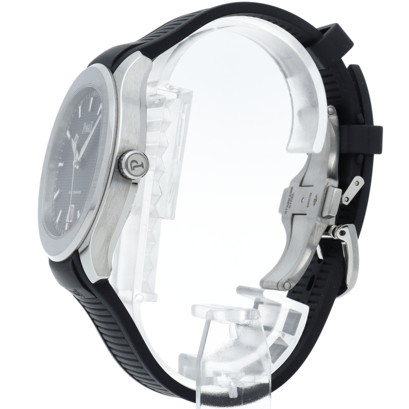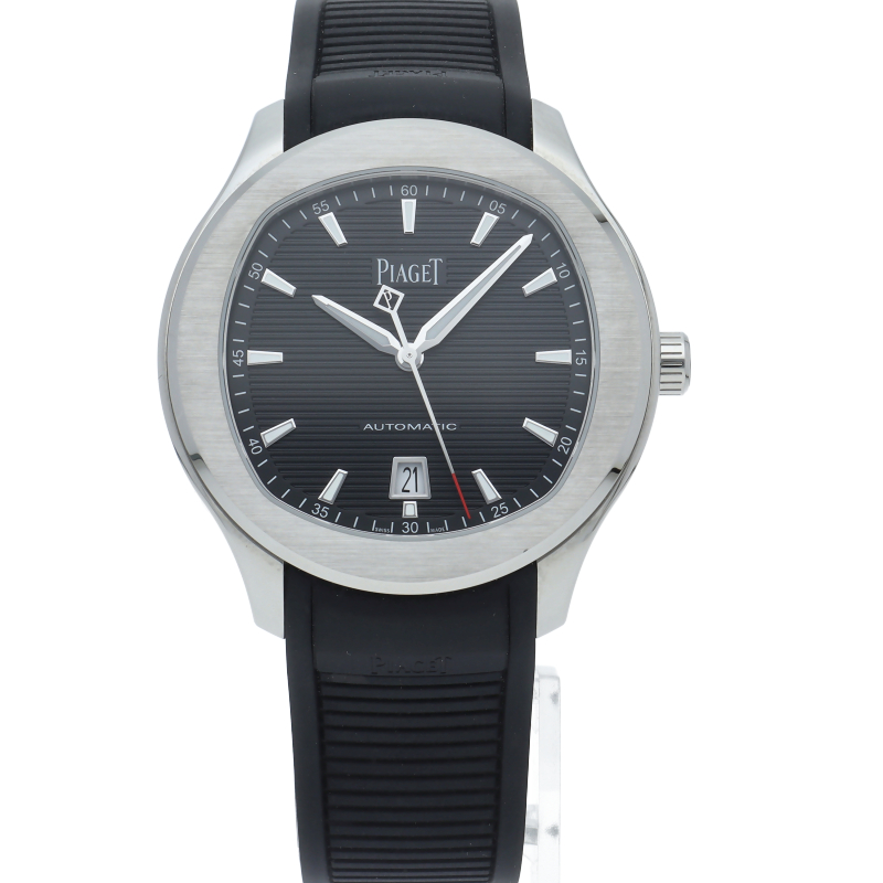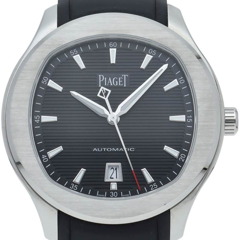 直径42mmのステンレススチール製ケースには、洗練されたポリッシュ仕上げとサテン仕上げが交互に配されています。サファイアケースバックからは、ピアジェの紋章が刻印されたチャコールグレーのローターの繊細な仕上げを見ることができます。細部まで美しい秒針には、スイスのマニュファクチュールの象徴として、透かし模様のPがあしらわれ、どんなシーンにもふさわしく、カジュアルでエレガンスな一本です。G0A47014/P11268。