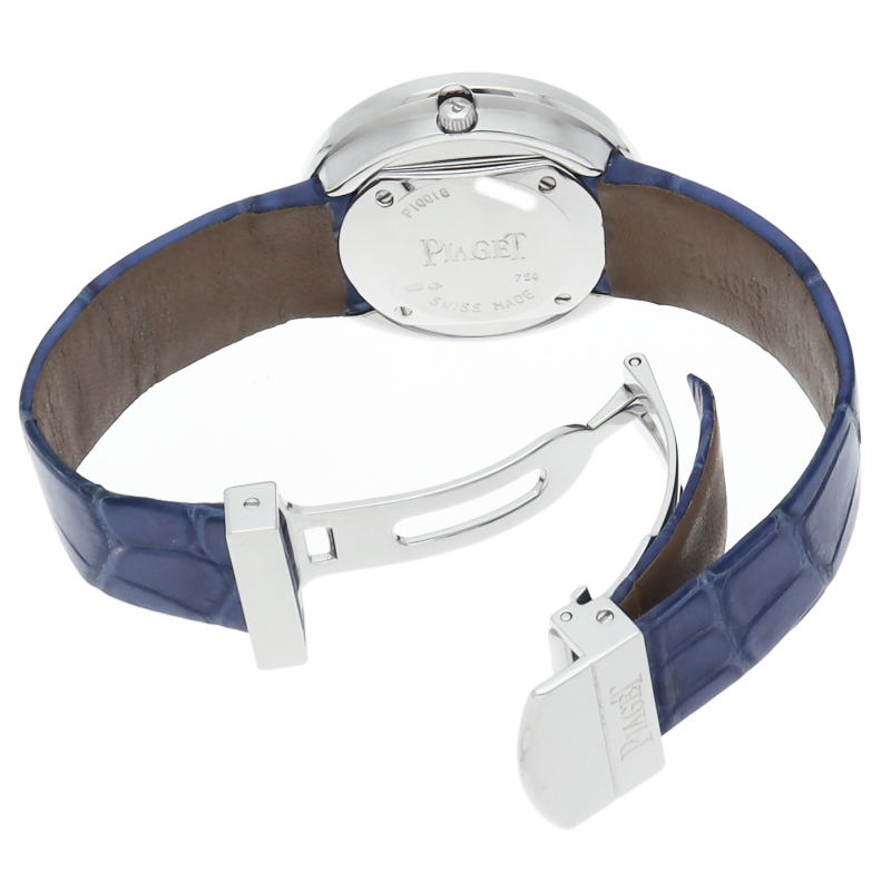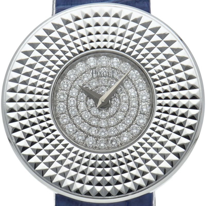 ピアジェの女性向け定番ラインとして人気がある「ライムライト」。ホワイトゴールドを贅沢に使用し、文字盤にはダイヤが施された豪華な一本です。