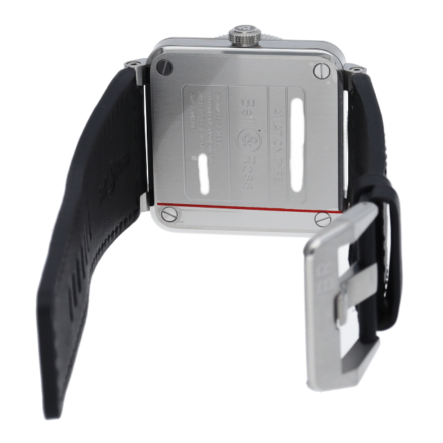 斬新な角形ケースが印象的なコレクション「BR03」。航空機のコックピットクロックから発想を得たこの時計は、視認性を重視した機能的な道具という面が一段と強調されています。