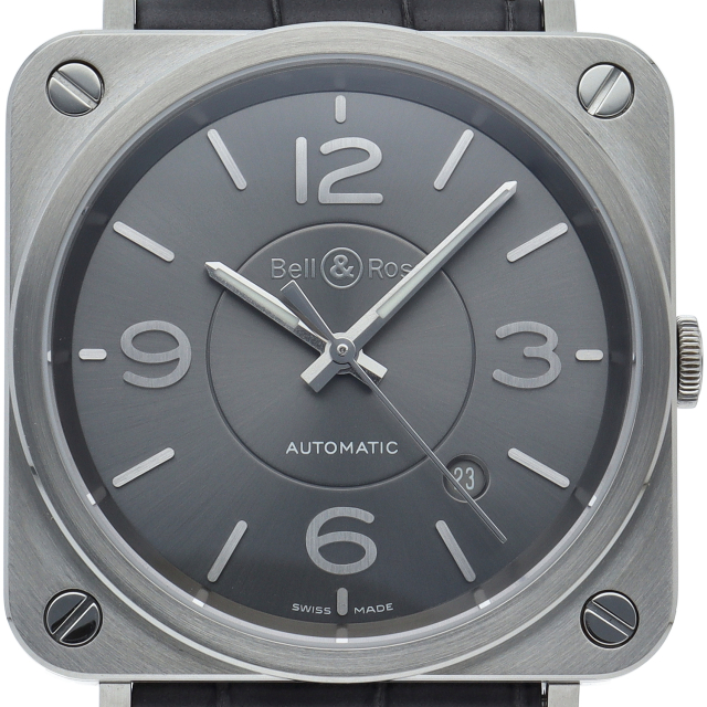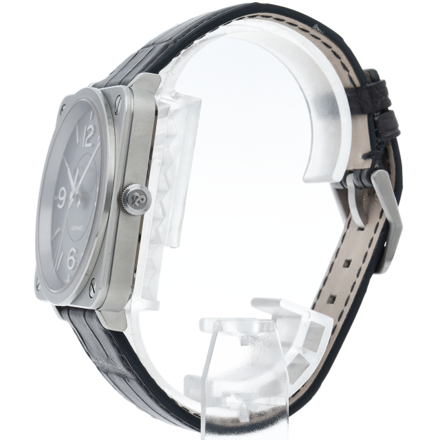 Bell&Rossの理念である「視認性」「機能性」「信頼性」そして「高精度」。これらに忠実に従った「BR05」は、都市に相応しい毅然とした外観と使用感を特徴としています。ケースのラインは幾何学図形の「丸」と「四角」を組み合わせたもの。BR05の構造は「四角」に連想される厳しさを凌駕し、「丸(円)」から受ける完成度の高さを超え、独自の個性を定義します。BRS-92-S(BRS-92 OFFICER-AL)。