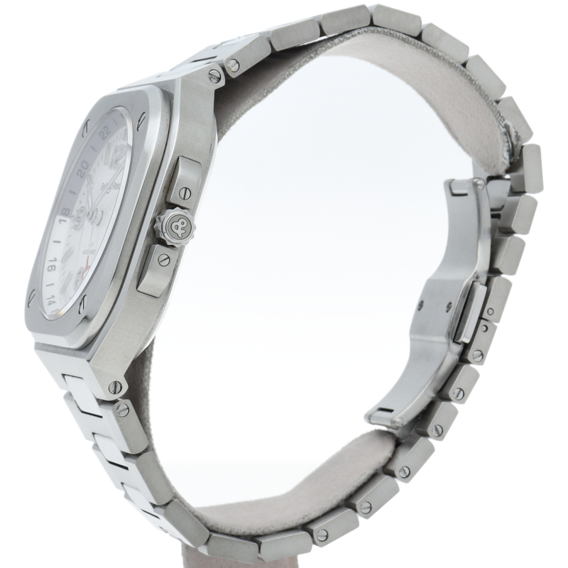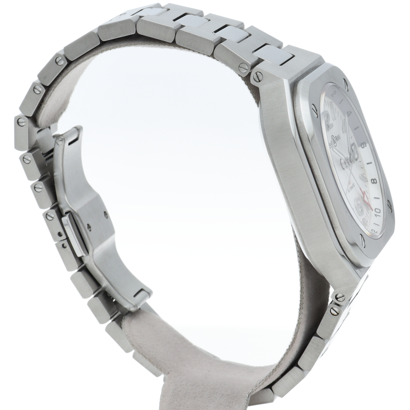 ベル&ロスの大人気コレクション「BR05」にGMT機能付きのモデルが加わった「BR05G-SI-ST/SST」。「BR 05」の美学と完璧に調和したGMT針のレッドカラーは航空計器に使用されている色調を反映したデザインになっております。ケースと一体化したラグは、ラグジュアリースポーツウォッチに共通するデザインで見た目の高級感・美しさのみならず装着感も高めます。