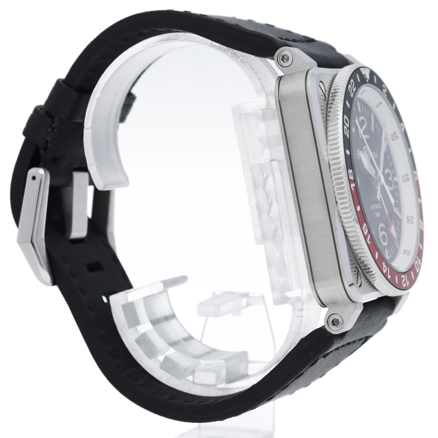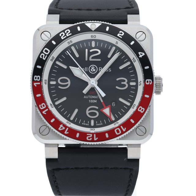 斬新な角形ケースが印象的なコレクション「BR03」。航空機のコックピットクロックから発想を得たこの時計は、視認性を重視した機能的な道具という面が一段と強調されています。