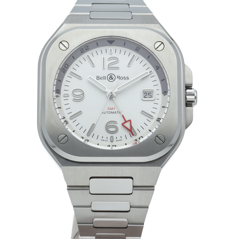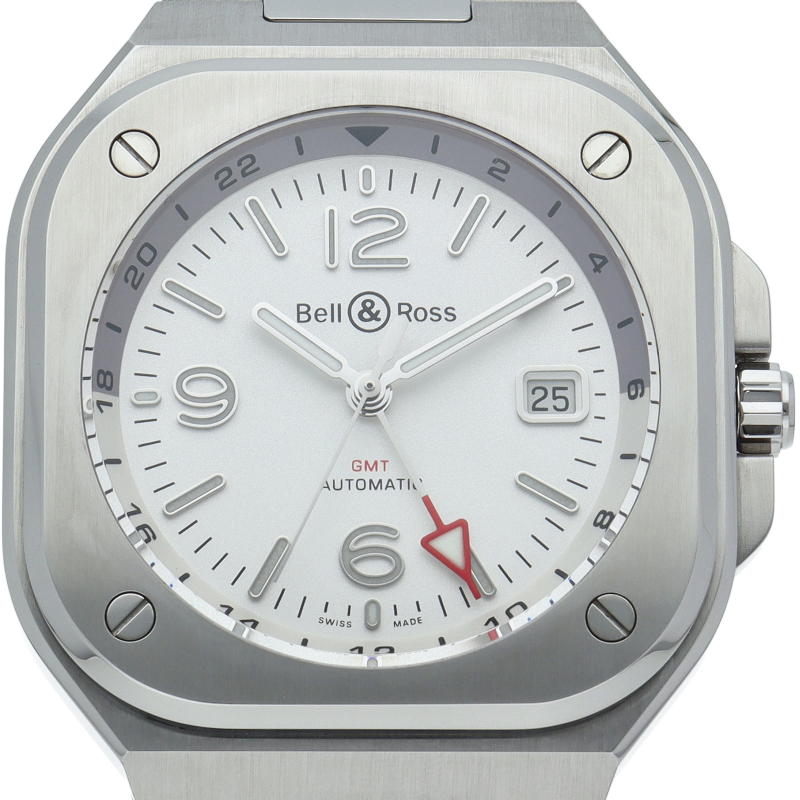 ベル&ロスの大人気コレクション「BR05」にGMT機能付きのモデルが加わった「BR05G-SI-ST/SST」。「BR 05」の美学と完璧に調和したGMT針のレッドカラーは航空計器に使用されている色調を反映したデザインになっております。ケースと一体化したラグは、ラグジュアリースポーツウォッチに共通するデザインで見た目の高級感・美しさのみならず装着感も高めます。