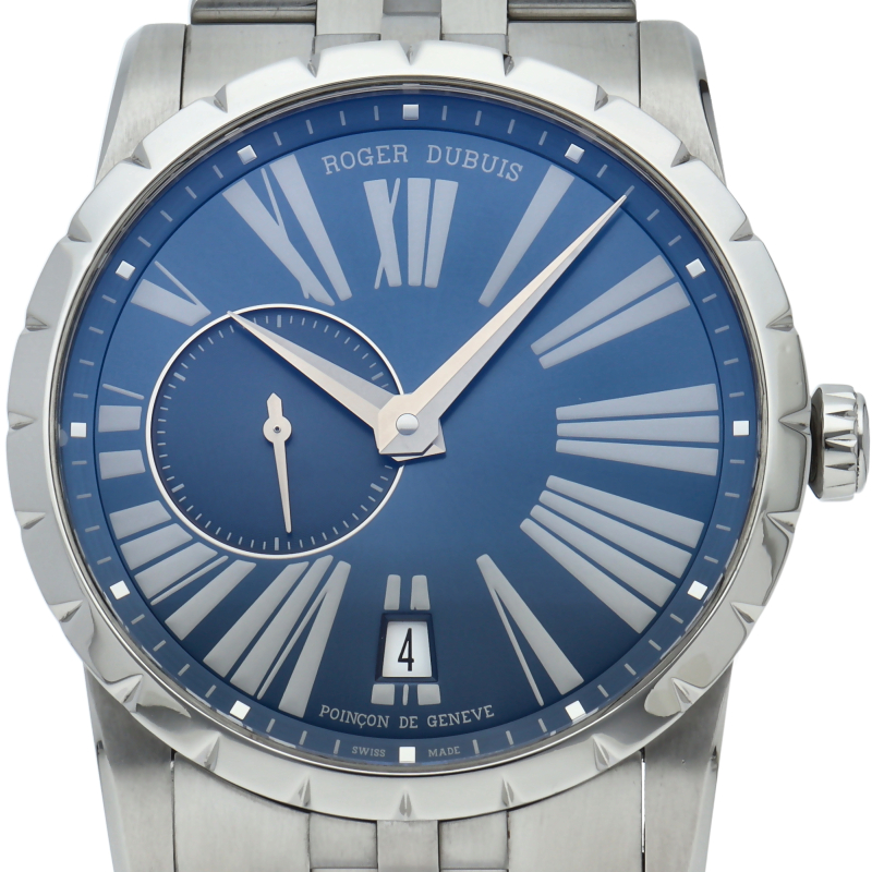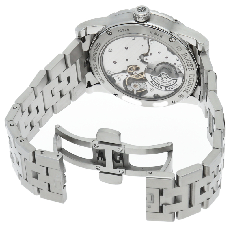 ロジェ・デュブイの人気モデル「エクスカリバー」。大胆にデザインされたローマンインデックスや独特の装飾が施されたベゼルなどから、抜群のインパクトを放つモデルです。日本限定88本の希少モデル。