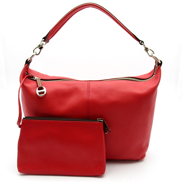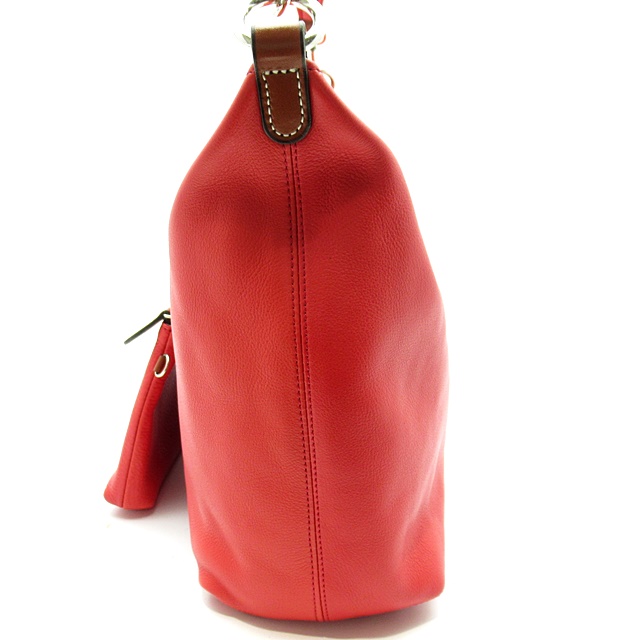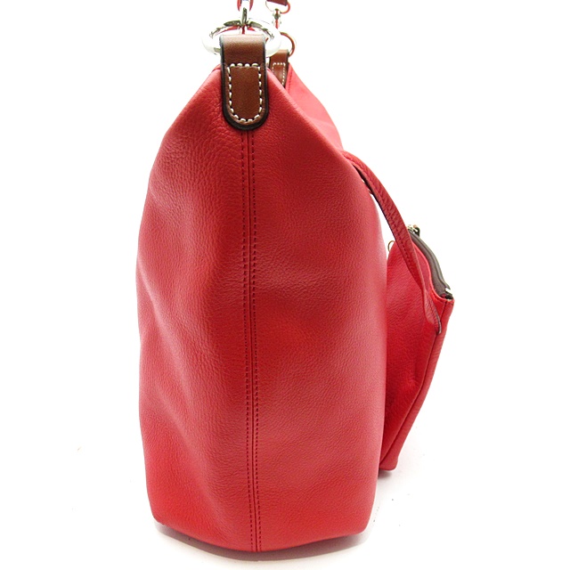 USED品。目を引くレッドの色合いがおしゃれなバッグ。取り外し可能なストラップがありますので、用途に応じて使い分けが可能です。