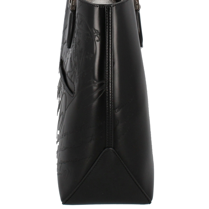 USED品。ヴェネチアレザーを使用した最高級のバッグブランド、ベルルッティ。全面に施された手書きで書かれた様なカリグラフィデザインはベルルッティを代表するデザインです。中身をすぐに取り出すことが可能で、肩に掛けたり手で持つことができます。