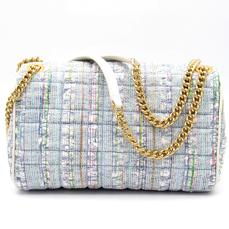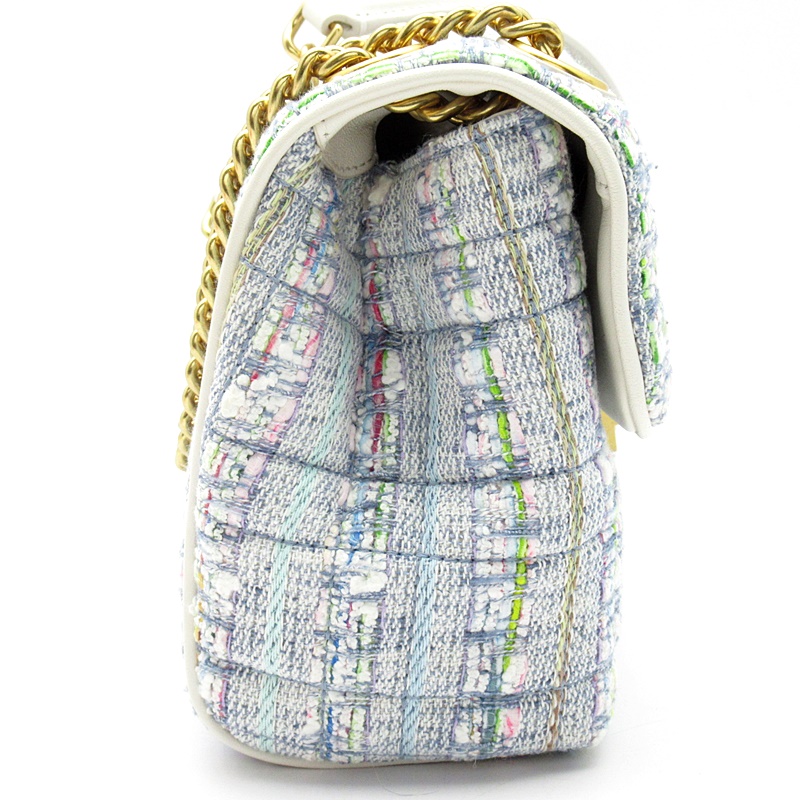 USED品。クラシックなフラップ式デザインにコンバーチブルチェーンストラップを合わせ、誰もが愛するタイムレスなルックに仕上げた「エブリン」ショルダーバッグ。春向けのこのモデルは、デニムツイードを復刻しクールな刷新を遂げています。