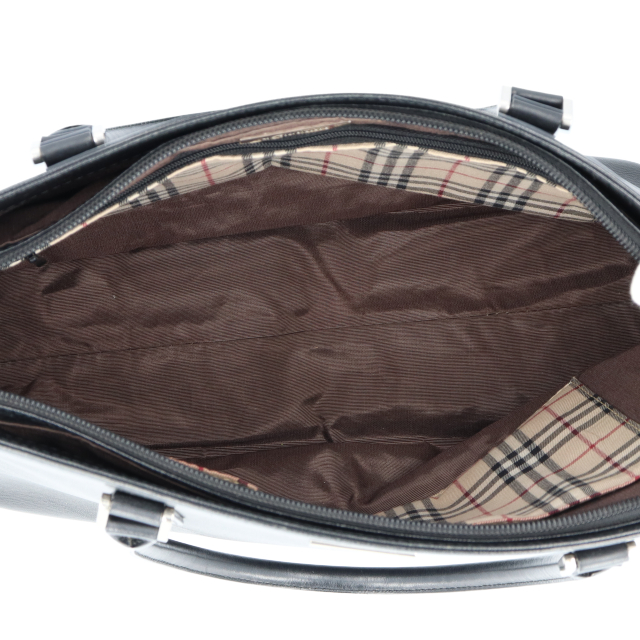 USED品。見た目はシンプルですが、開けるとバーバリーチェックが入ったBURBERRYらしいバッグです。様々なシーンでお使い頂けます。