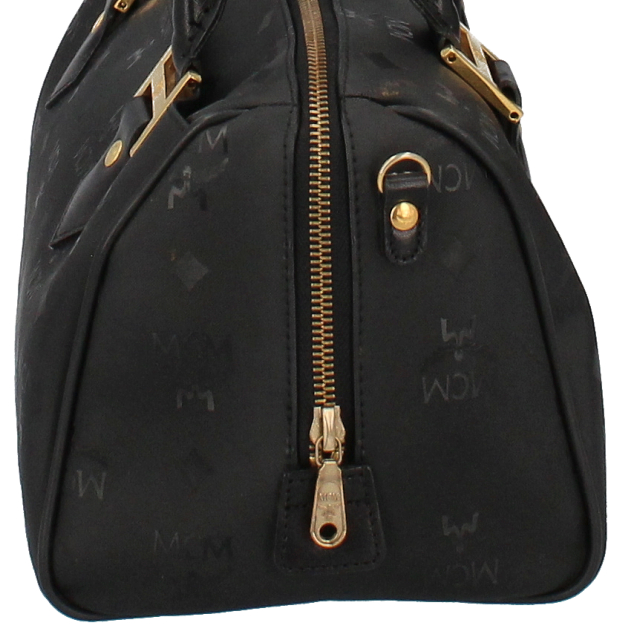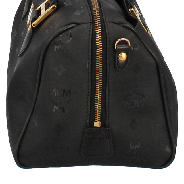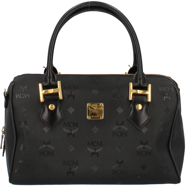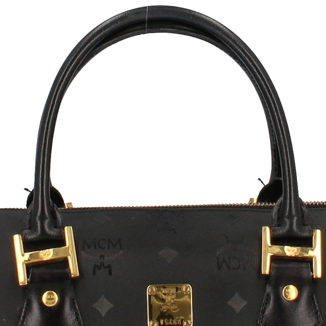 USED品。MCMのボストン型のミニバッグです。ストラップ付なのでショルダーとしてもお使い頂けます。