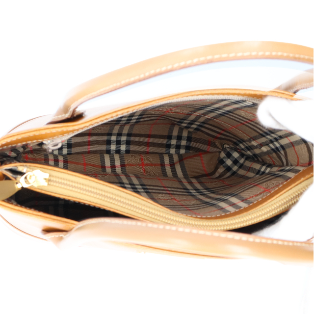 USED品。見た目はシンプルですが、開けるとバーバリーチェックが入ったBURBERRYらしいバッグです。様々なシーンでお使い頂けます。