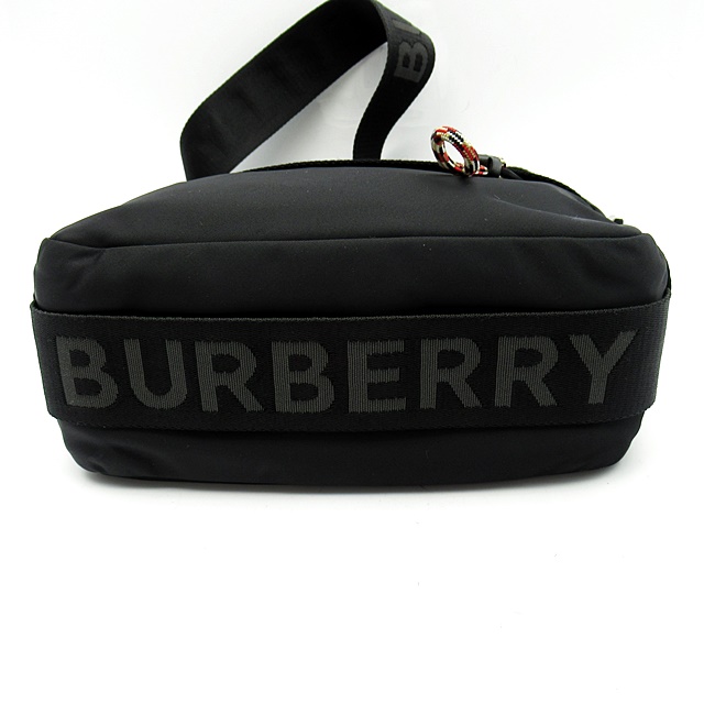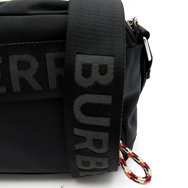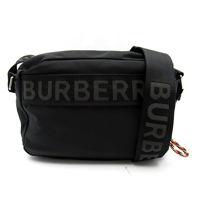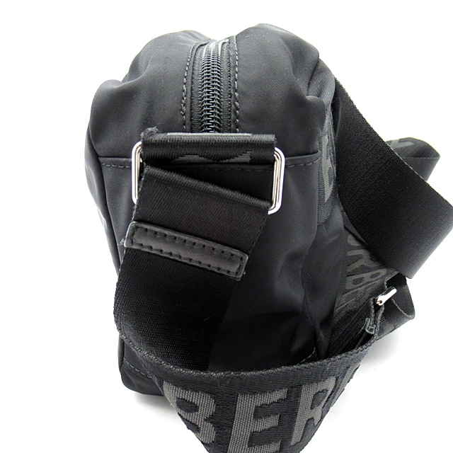 USED品。コンパクトなクロスボディバッグ。素材は工業用プラスチックなどを再生した、環境に優しいエコナイロンを採用。ベルト部分にBURBERRYロゴを織り込み、シンプルなルックスのアクセントに。