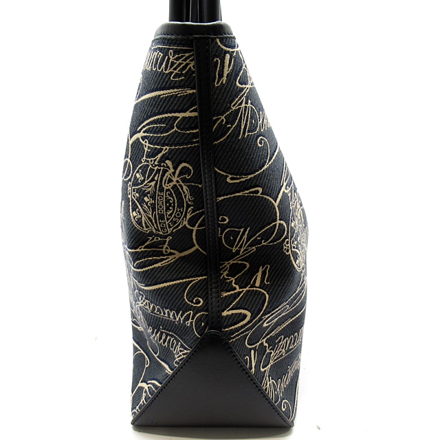 USED品。ヴェネチアレザーを使用した最高級のバッグブランド、ベルルッティ。全面に施された手書きで書かれた様なカリグラフィデザインはベルルッティを代表するデザインです。中身をすぐに取り出すことが可能で、肩に掛けたり手で持つことができます。