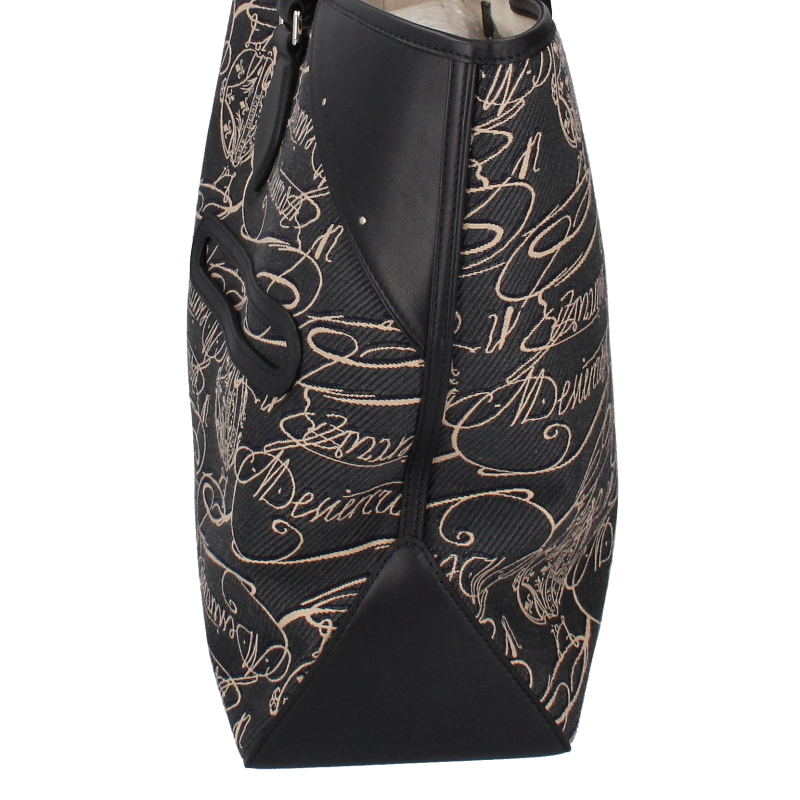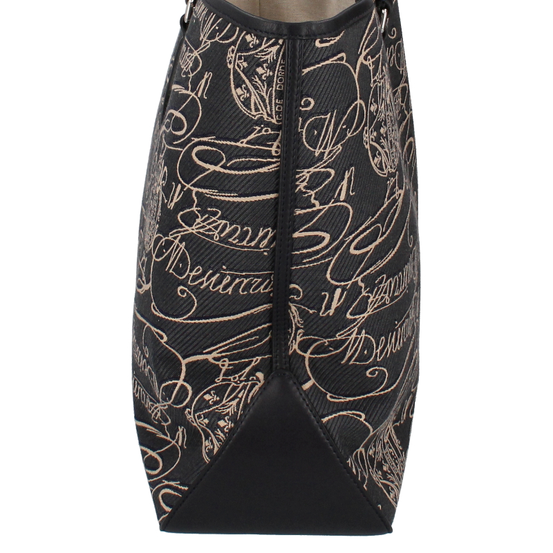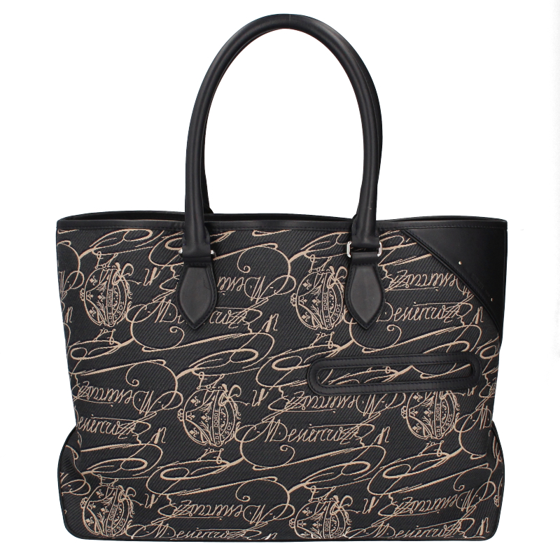 USED品。ヴェネチアレザーを使用した最高級のバッグブランド、ベルルッティ。全面に施された手書きで書かれた様なカリグラフィデザインはベルルッティを代表するデザインです。中身をすぐに取り出すことが可能で、肩に掛けたり手で持つことができます。