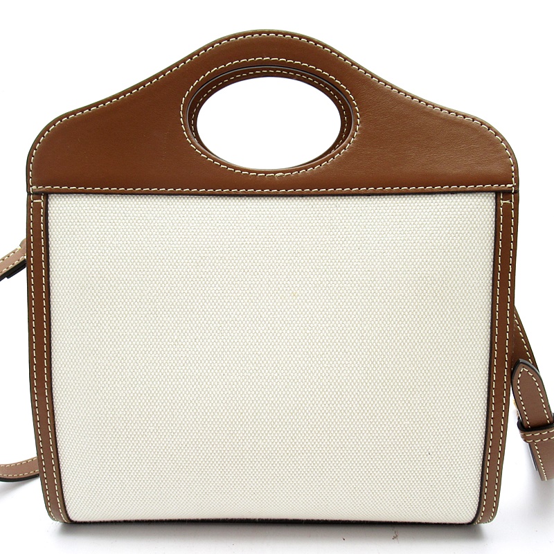 USED品。アーカイブにインスパイアされたバッグ。フロントポケットにプリントしたバーバリーの本社住所が目を引くデザインです。