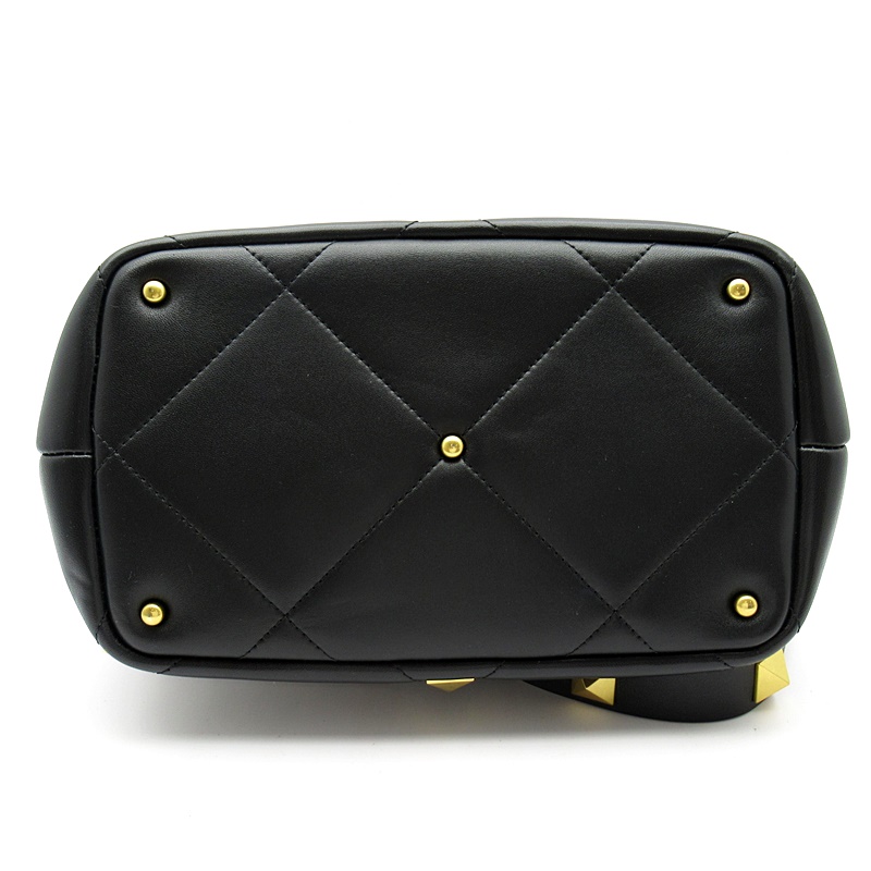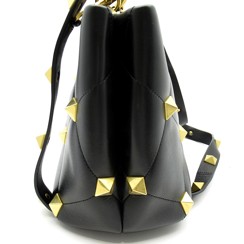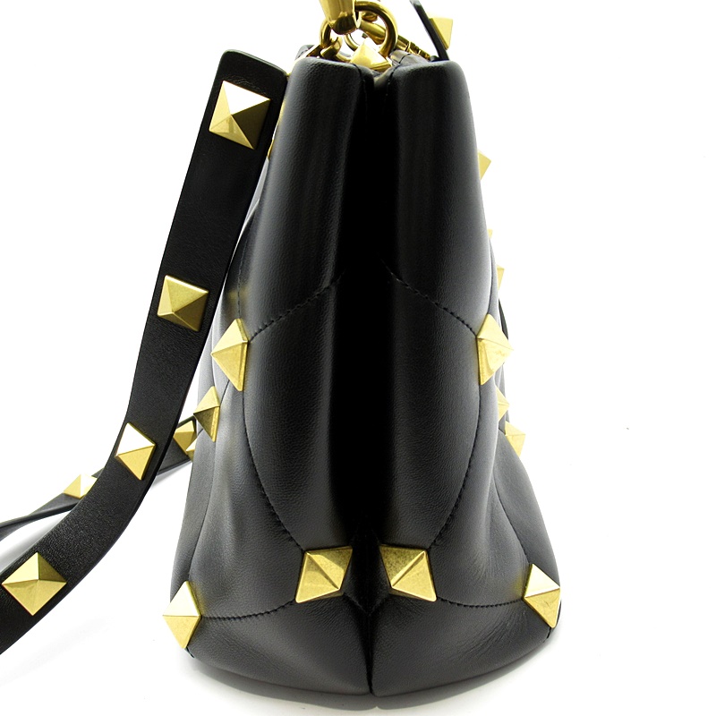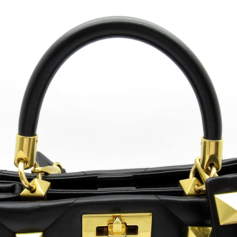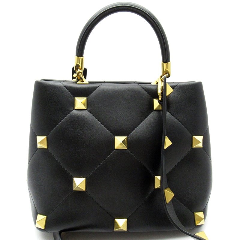 USED品。柔らかなナッパレザーを使用した2WAYハンドバッグ。シンプルなフォルムとスタッズのメリハリが魅力のアイテム。