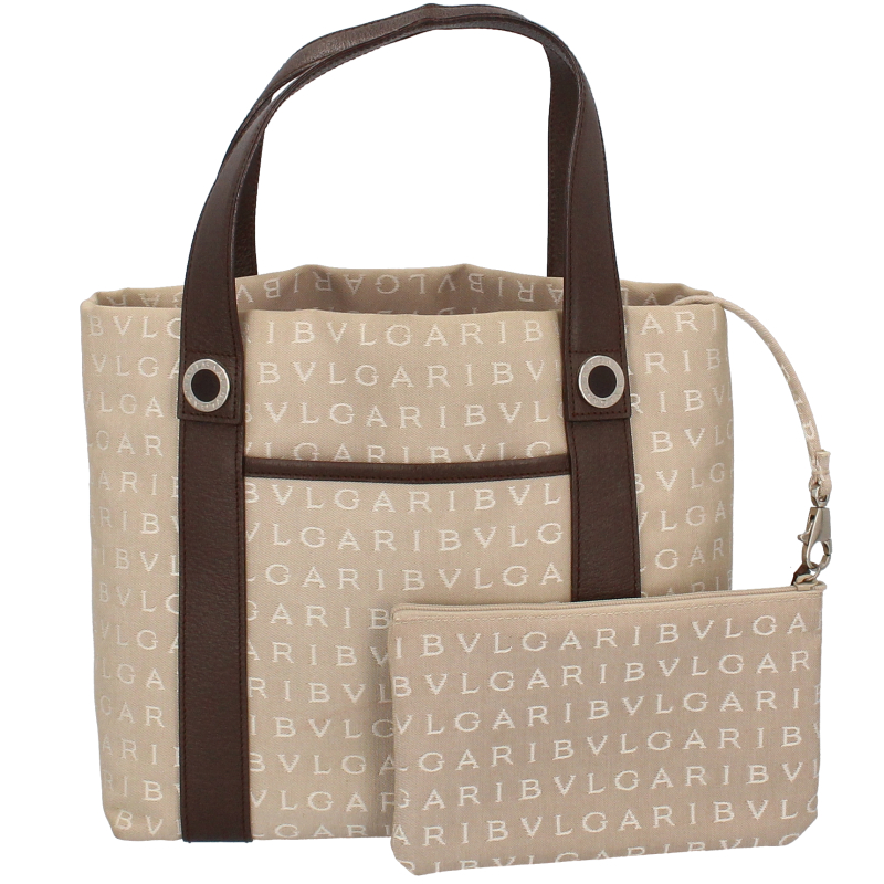 USED品。ブルガリらしさが感じられる大人可愛いトートバッグです。シンプルなデザインながらも、耐久性に優れたデザイン。ポーチ付きで利便性も非常に高いです。
