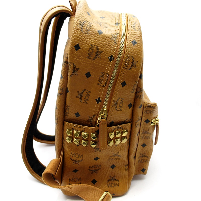 USED品。今、大変人気のあるMCMのリュックとなります。サイドのスタッズがオシャレさを引き立てます。