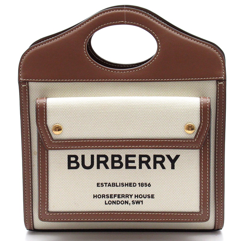 USED品。アーカイブにインスパイアされたトート。フロントポケットにプリントしたバーバリーの本社住所が目を引くデザインです。