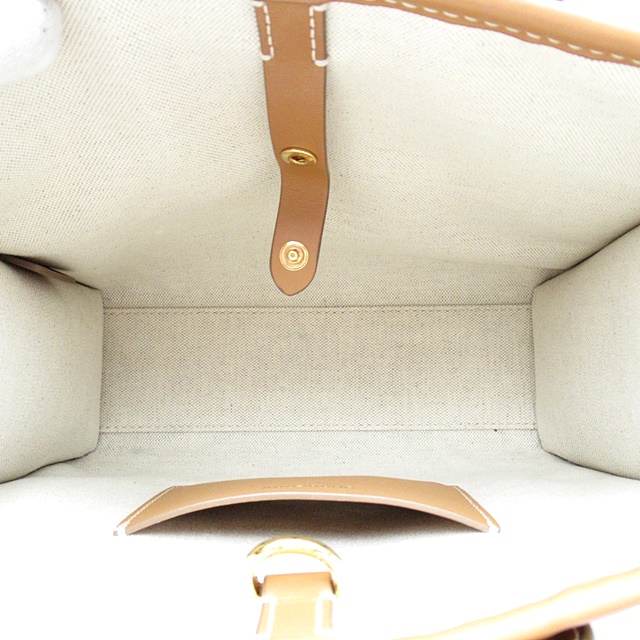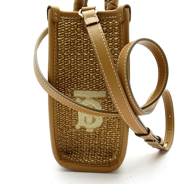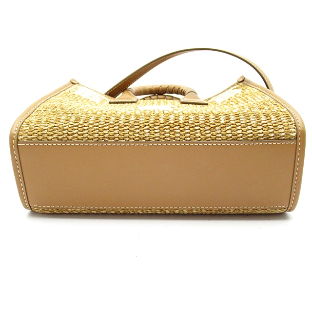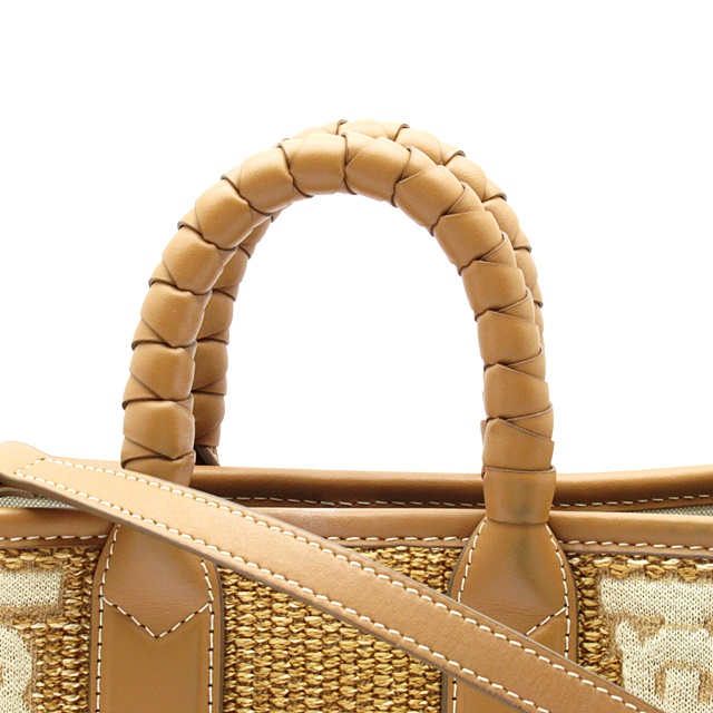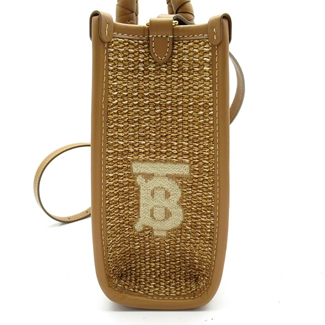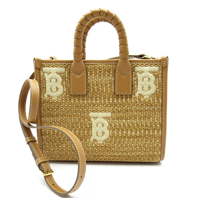 USED品。トーマス・バーバリー モノグラムのパターンを配した、コンパクトなラフィア風のトート。トップステッチを施したレザートリムです。