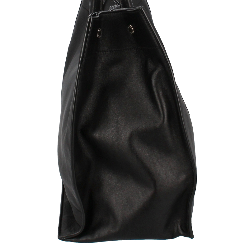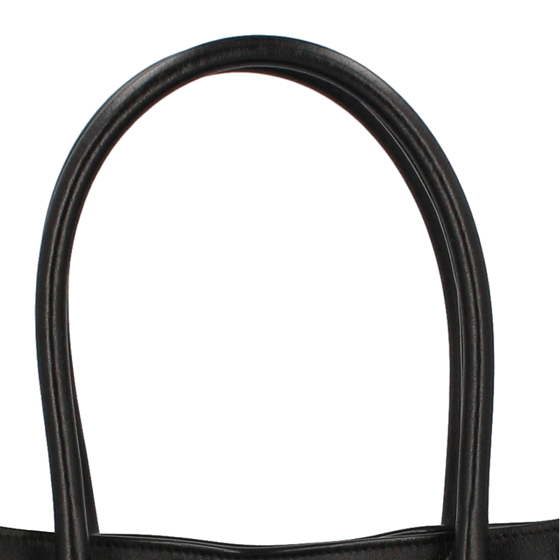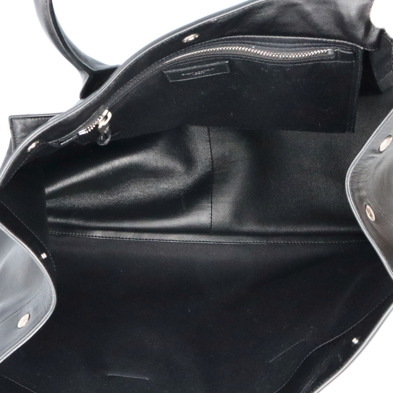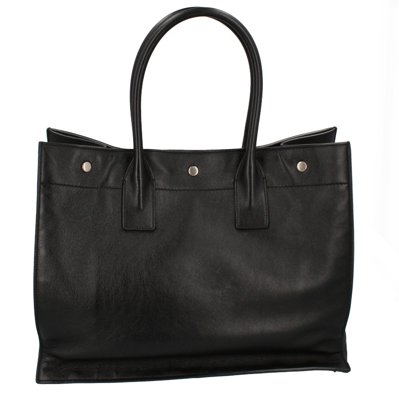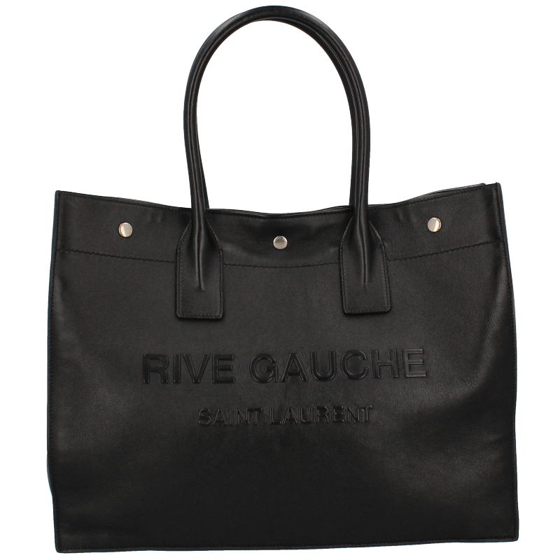 USED品。サンローラン “リヴゴーシュ” スモールトートバッグ。チューブハンドル、サンローランの刻印が入ったスナップボタン3つで留めることができ、内側のジップポケットが特徴的です。