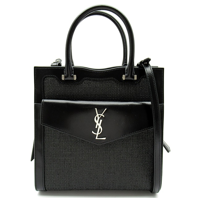 USED品。ハンドバッグやショルダーバッグとして使えるだけでなく、メタルのYSLロゴがあしらわれた部分はクラッチバッグとして取り外し可能な嬉しい3WAYバッグです。