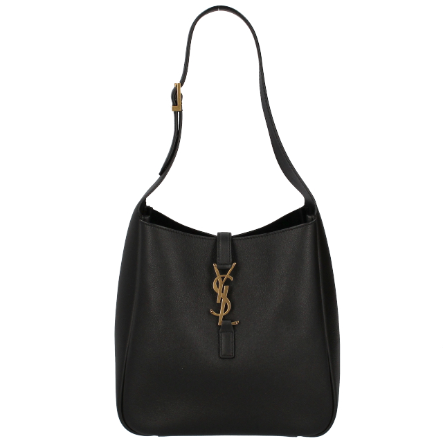 USED品。アイコニックなLE 5 A 7のソフトモデル。収納力があり、YSLモノグラムがあしらわれたレザータブと、内側にジップポケット1つを備えています。