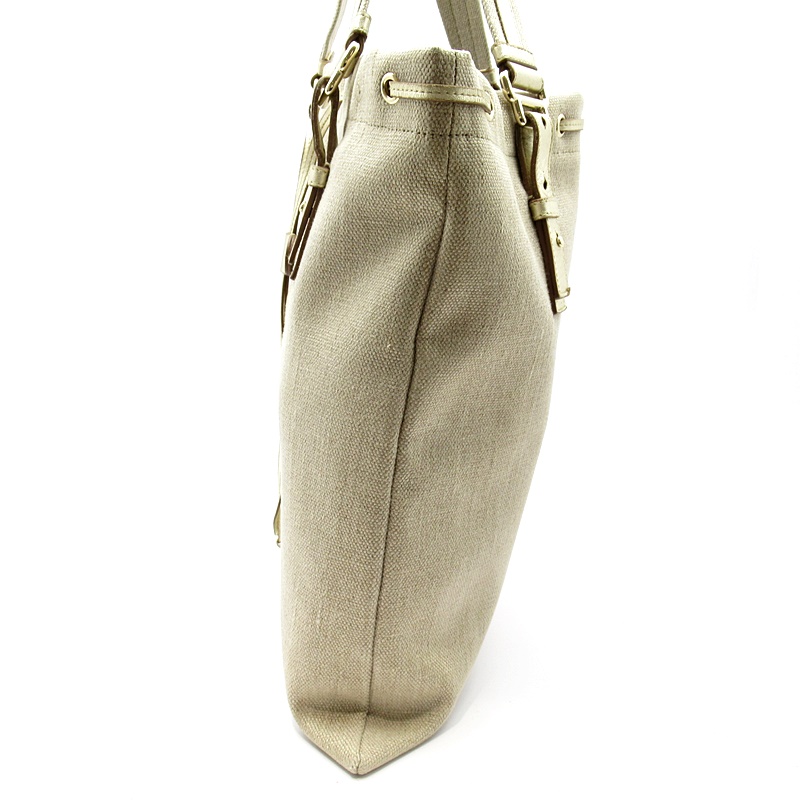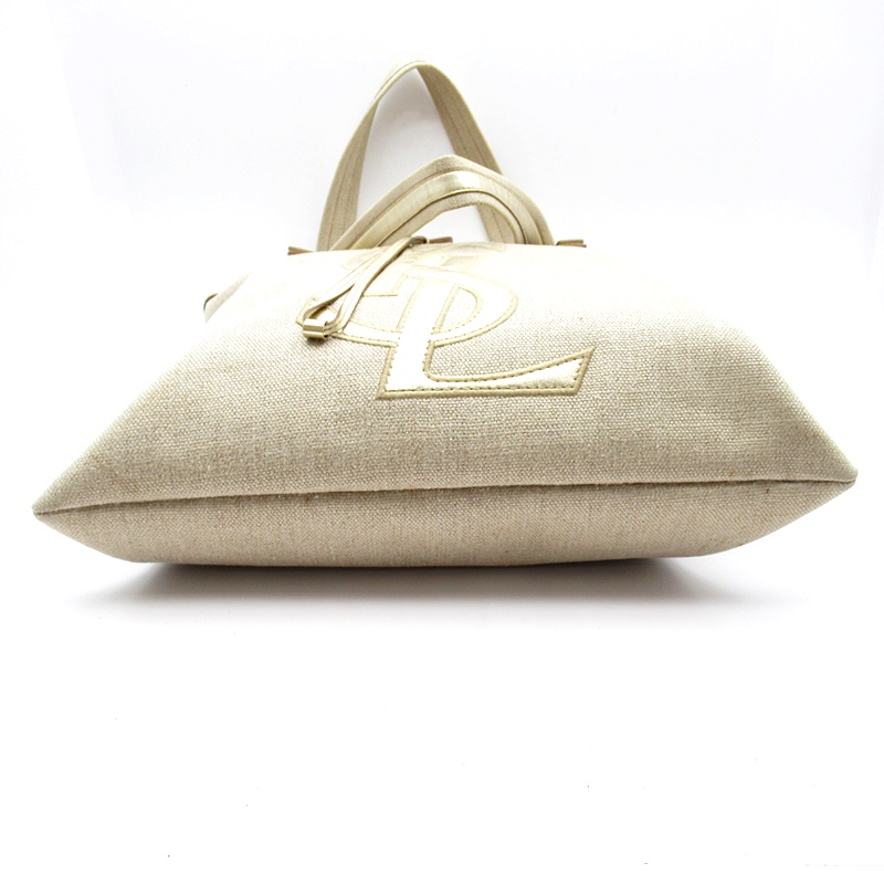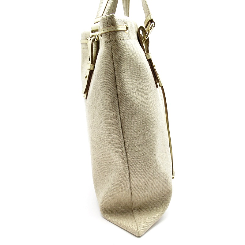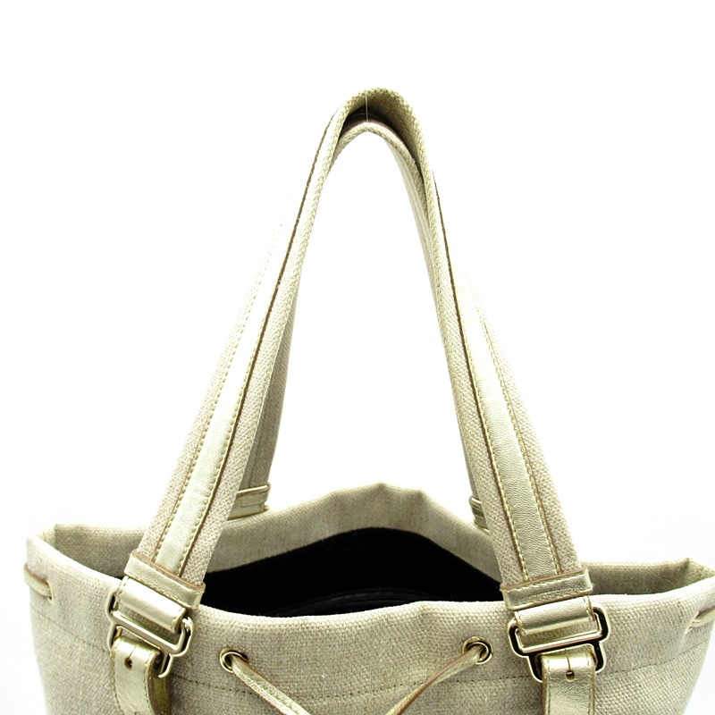 USED品。正面に大きくデザインされたロゴがポイントになっています。開閉口部分の紐を閉めるとまた違ったフォルムでお楽しみ頂ける魅力的なバッグです。