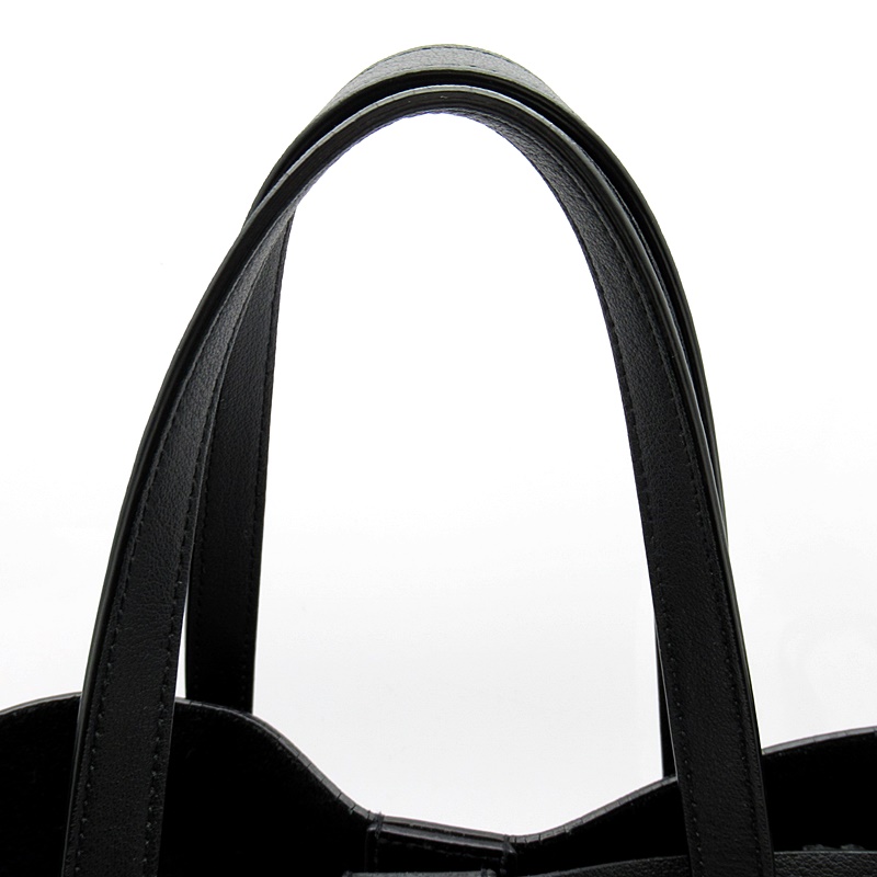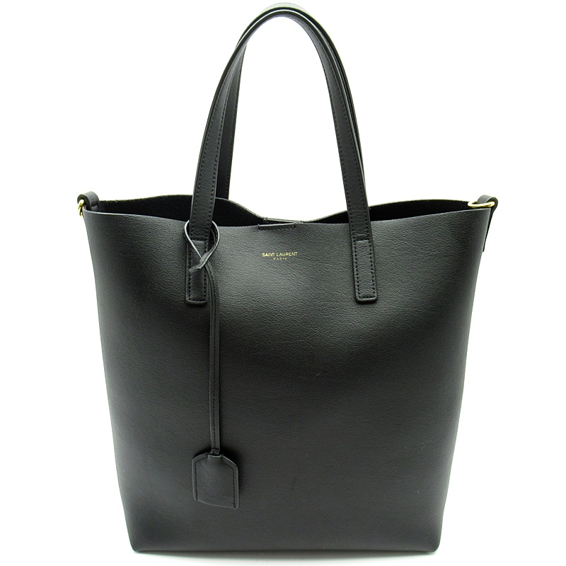 USED品。ノース/サウス シルエットのスモール トイ ショッピングバッグ。YSLモノグラムチャームがあしらわれます。