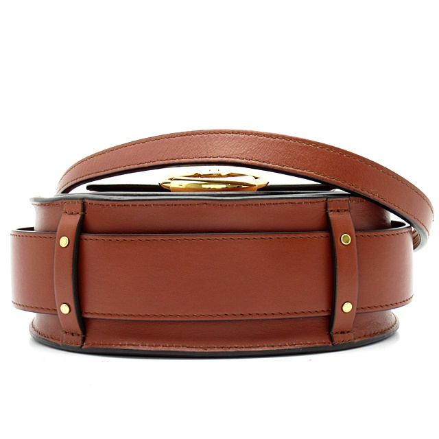 USED品。収納力に優れ、日常使いに最適です。ダブルストラップ(短長各1本)はゴールドトーンとシルバートーンのフェミニンなフック付き。ハンドバッグのベースに沿ってあしらわれた存在感のあるレザーバンドが、丸みのあるシェイプを引き立てます。