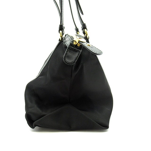 USED品。ゴールド金具がアクセントになっています。ナイロン素材を使用しているので、軽くて使いやすいバッグです。